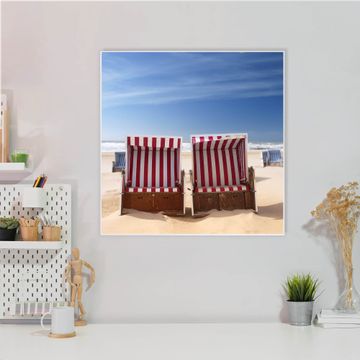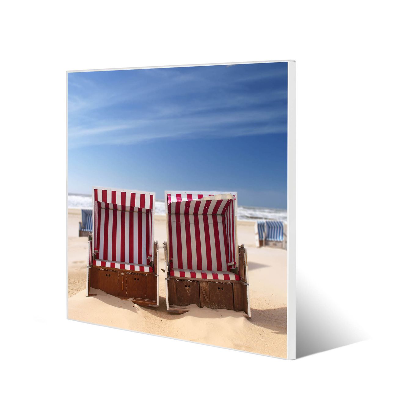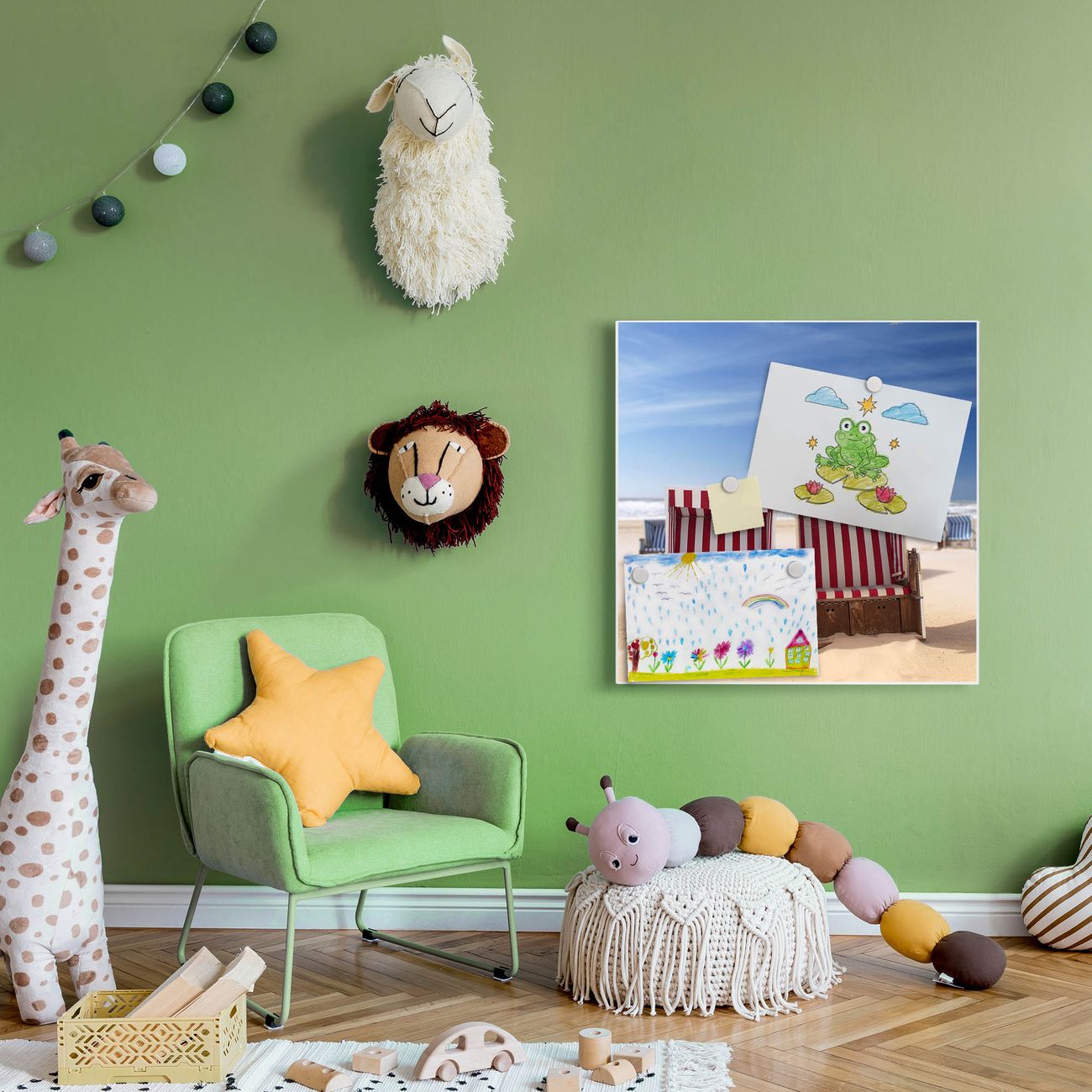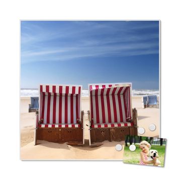 Die banjado Design Magnettafel mit Motiv Motiv Strandkörbe bringt Ordnung in Ihr Zettelchaos. Fotos, Termine, Notizen oder Rezepte lassen Sich hier stilvoll mit Magneten ordnen, Sie behalten alles im Blick. An der Pinnwand halten alle handelsüblichen Magnete. Mit dieser Pinnwand aus Metall haben Sie auch ohne Notizen und Magnete ein schönes Dekoelement. Das Quadratische Format bietet Ihnen ausreichend Platz um alle wichtigen Informationen im Blick zu behalten.