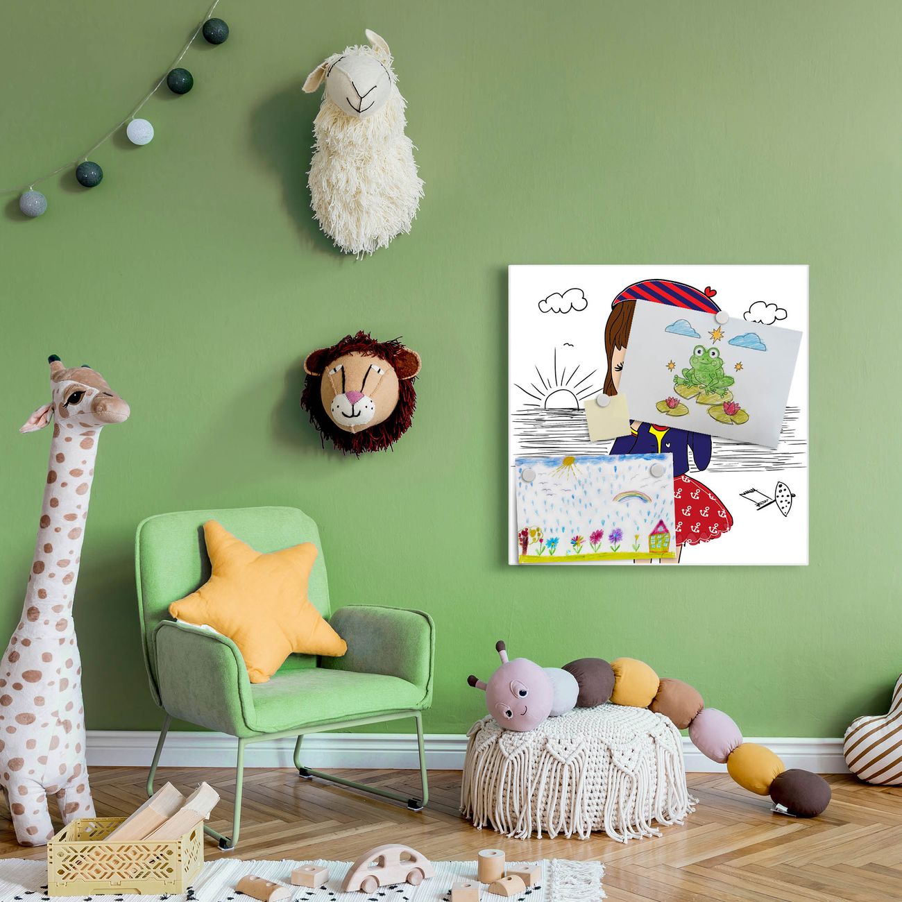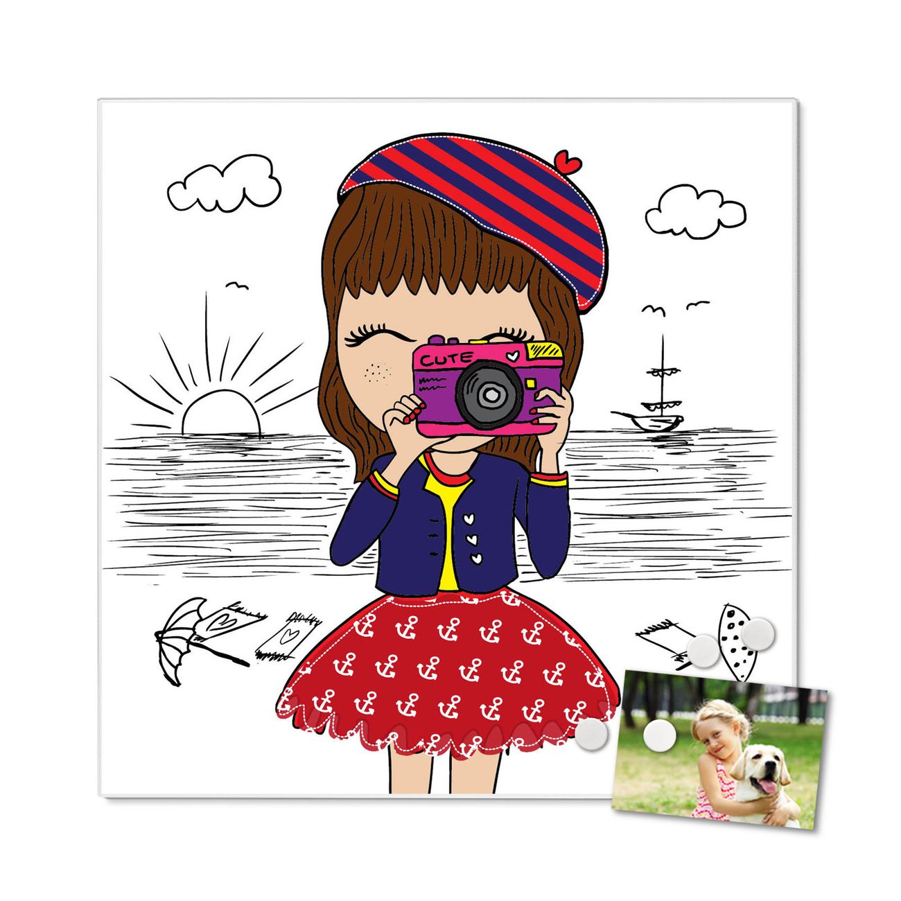 Die banjado Design Magnettafel mit Motiv Motiv Süße Kamera bringt Ordnung in Ihr Zettelchaos. Fotos, Termine, Notizen oder Rezepte lassen Sich hier stilvoll mit Magneten ordnen, Sie behalten alles im Blick. An der Pinnwand halten alle handelsüblichen Magnete. Mit dieser Pinnwand aus Metall haben Sie auch ohne Notizen und Magnete ein schönes Dekoelement. Das Quadratische Format bietet Ihnen ausreichend Platz um alle wichtigen Informationen im Blick zu behalten.