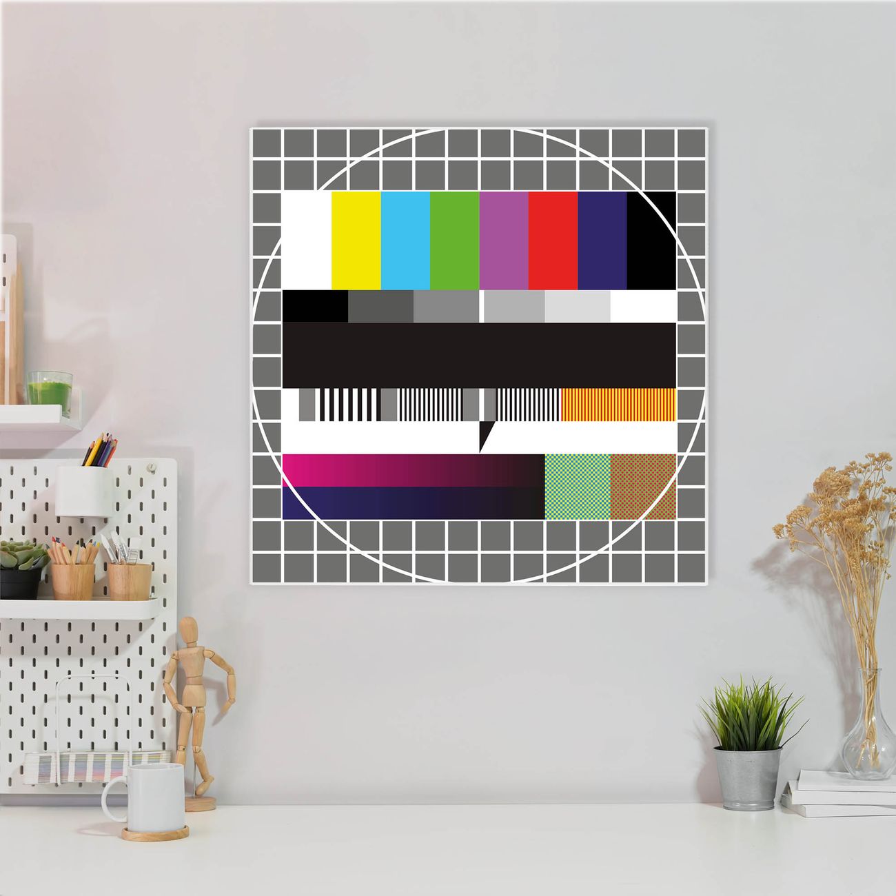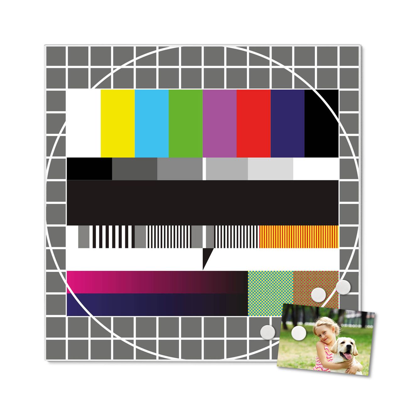Die banjado Design Magnettafel mit Motiv Motiv Testbild bringt Ordnung in Ihr Zettelchaos. Fotos, Termine, Notizen oder Rezepte lassen Sich hier stilvoll mit Magneten ordnen, Sie behalten alles im Blick. An der Pinnwand halten alle handelsüblichen Magnete. Mit dieser Pinnwand aus Metall haben Sie auch ohne Notizen und Magnete ein schönes Dekoelement. Das Quadratische Format bietet Ihnen ausreichend Platz um alle wichtigen Informationen im Blick zu behalten.