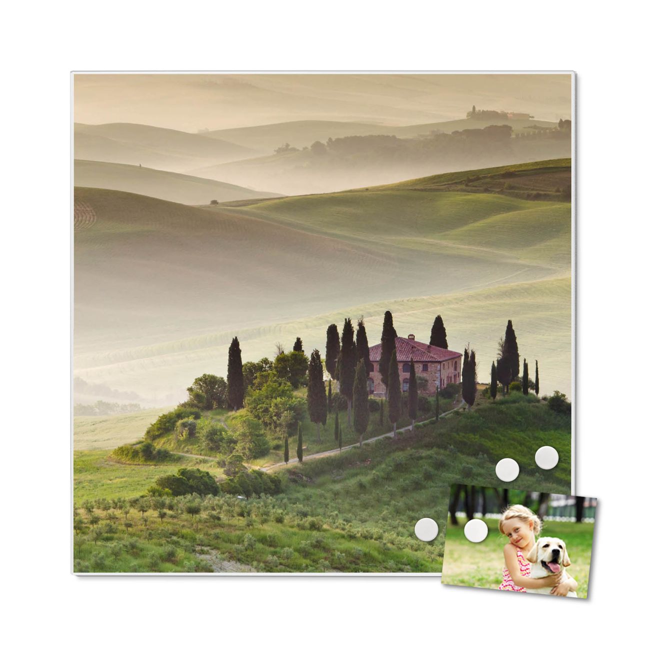 Die banjado Design Magnettafel mit Motiv Motiv Toscana bringt Ordnung in Ihr Zettelchaos. Fotos, Termine, Notizen oder Rezepte lassen Sich hier stilvoll mit Magneten ordnen, Sie behalten alles im Blick. An der Pinnwand halten alle handelsüblichen Magnete. Mit dieser Pinnwand aus Metall haben Sie auch ohne Notizen und Magnete ein schönes Dekoelement. Das Quadratische Format bietet Ihnen ausreichend Platz um alle wichtigen Informationen im Blick zu behalten.