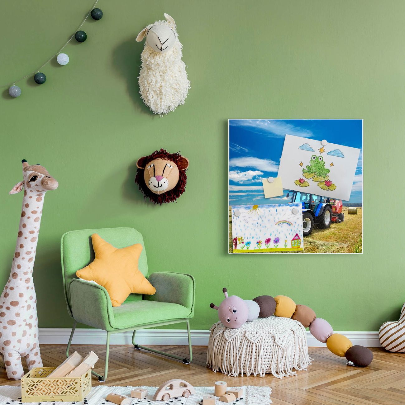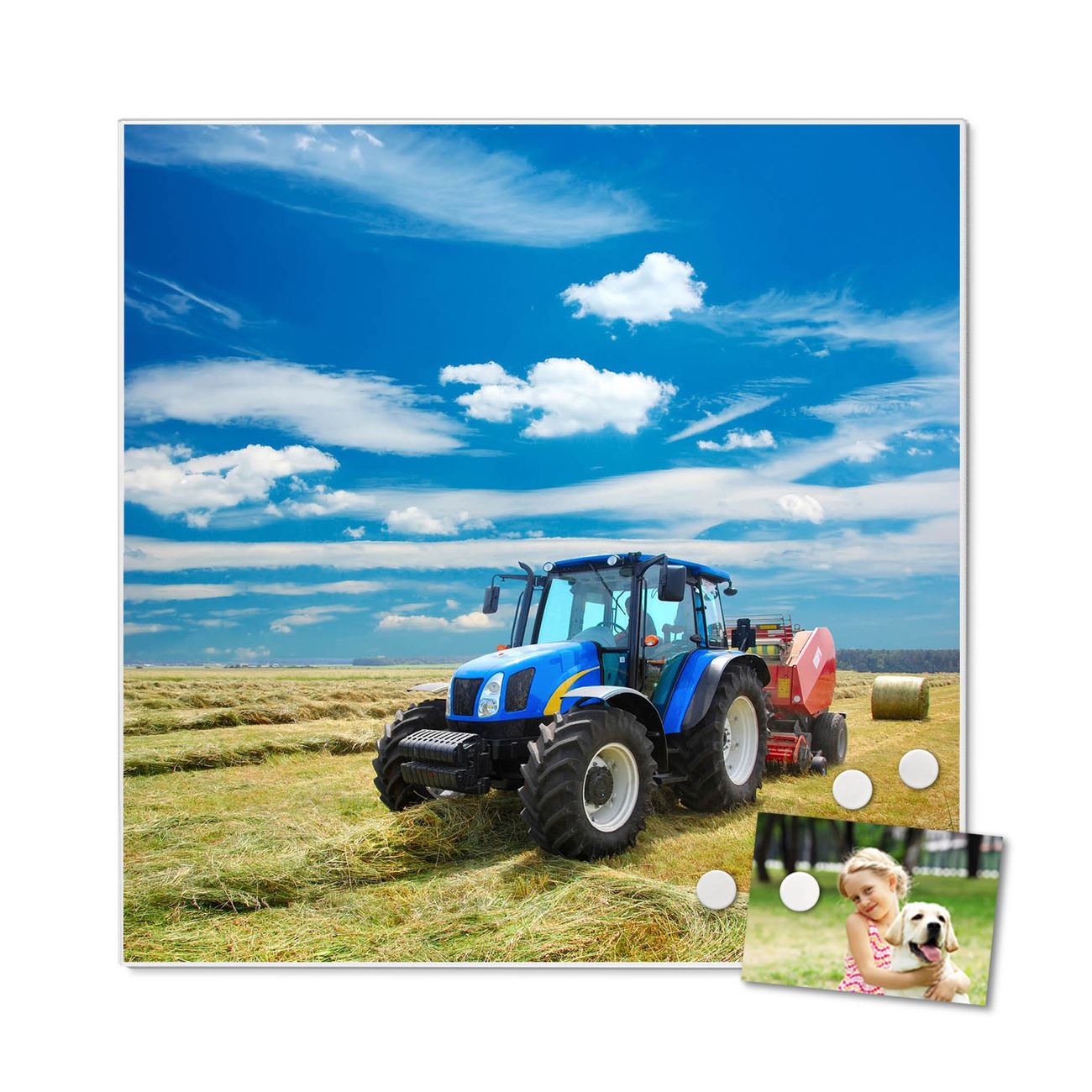 Die banjado Design Magnettafel mit Motiv Motiv Traktor bringt Ordnung in Ihr Zettelchaos. Fotos, Termine, Notizen oder Rezepte lassen Sich hier stilvoll mit Magneten ordnen, Sie behalten alles im Blick. An der Pinnwand halten alle handelsüblichen Magnete. Mit dieser Pinnwand aus Metall haben Sie auch ohne Notizen und Magnete ein schönes Dekoelement. Das Quadratische Format bietet Ihnen ausreichend Platz um alle wichtigen Informationen im Blick zu behalten.