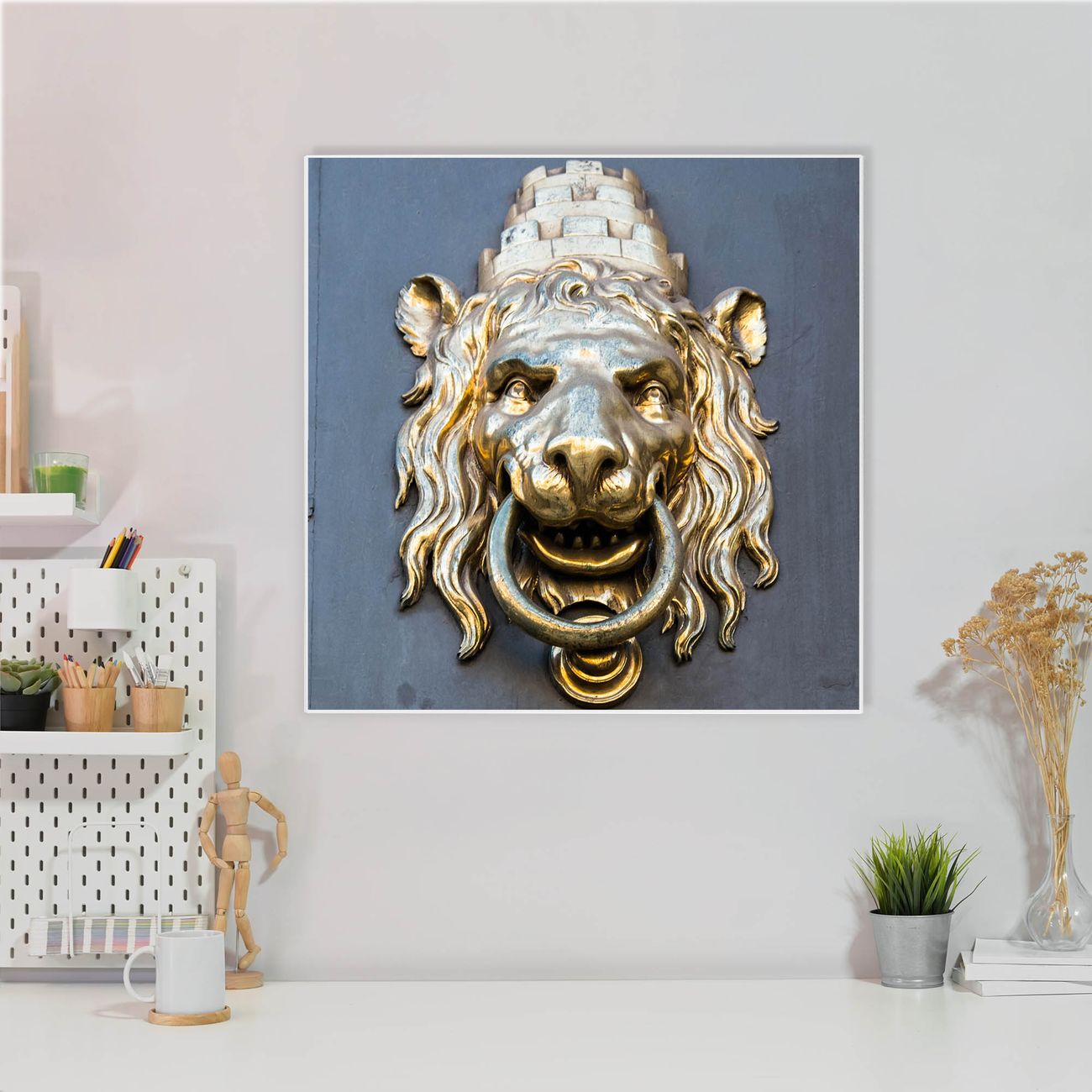 Stahl Magnettafel 50x50cm Türklopfer Löwe