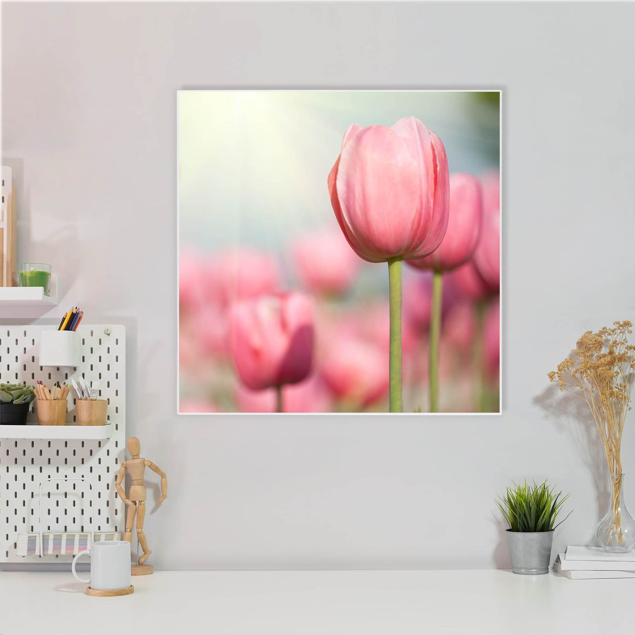 Die banjado Design Magnettafel mit Motiv Motiv Tulpen bringt Ordnung in Ihr Zettelchaos. Fotos, Termine, Notizen oder Rezepte lassen Sich hier stilvoll mit Magneten ordnen, Sie behalten alles im Blick. An der Pinnwand halten alle handelsüblichen Magnete. Mit dieser Pinnwand aus Metall haben Sie auch ohne Notizen und Magnete ein schönes Dekoelement. Das Quadratische Format bietet Ihnen ausreichend Platz um alle wichtigen Informationen im Blick zu behalten.