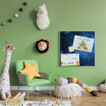 Die banjado Design Magnettafel mit Motiv Motiv Universum bringt Ordnung in Ihr Zettelchaos. Fotos, Termine, Notizen oder Rezepte lassen Sich hier stilvoll mit Magneten ordnen, Sie behalten alles im Blick. An der Pinnwand halten alle handelsüblichen Magnete. Mit dieser Pinnwand aus Metall haben Sie auch ohne Notizen und Magnete ein schönes Dekoelement. Das Quadratische Format bietet Ihnen ausreichend Platz um alle wichtigen Informationen im Blick zu behalten.