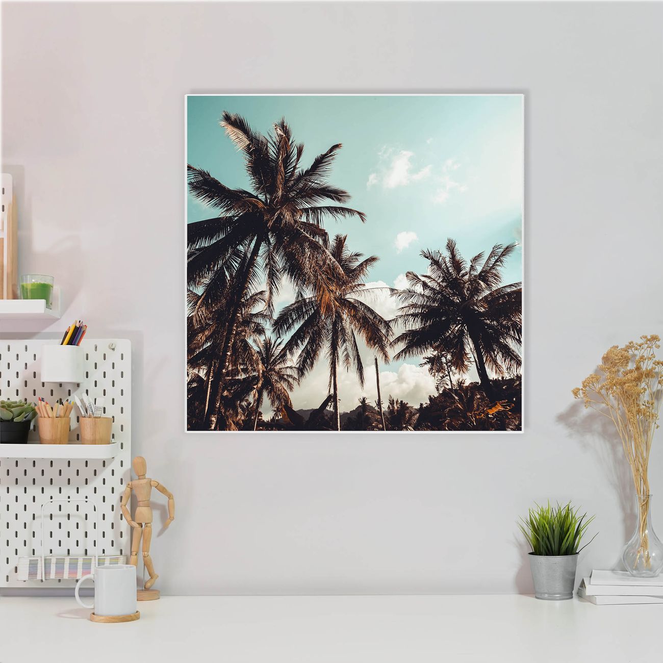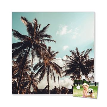 Die banjado Design Magnettafel mit Motiv Motiv Unter Palmen bringt Ordnung in Ihr Zettelchaos. Fotos, Termine, Notizen oder Rezepte lassen Sich hier stilvoll mit Magneten ordnen, Sie behalten alles im Blick. An der Pinnwand halten alle handelsüblichen Magnete. Mit dieser Pinnwand aus Metall haben Sie auch ohne Notizen und Magnete ein schönes Dekoelement. Das Quadratische Format bietet Ihnen ausreichend Platz um alle wichtigen Informationen im Blick zu behalten.