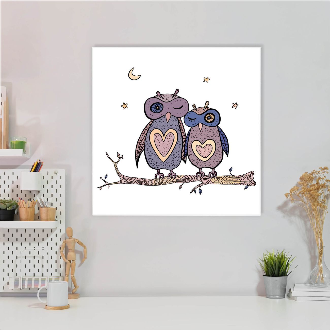 Stahl Magnettafel 50x50cm Verliebte Eulen