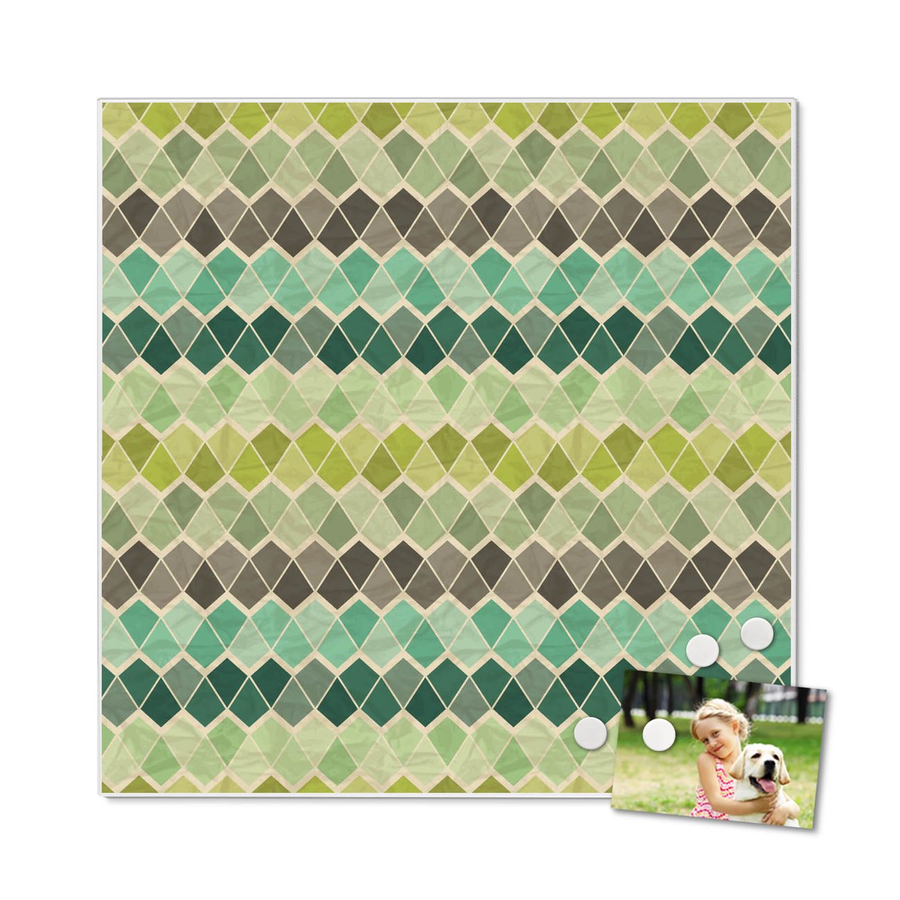 Die banjado Design Magnettafel mit Motiv Motiv Vier Farben Grün bringt Ordnung in Ihr Zettelchaos. Fotos, Termine, Notizen oder Rezepte lassen Sich hier stilvoll mit Magneten ordnen, Sie behalten alles im Blick. An der Pinnwand halten alle handelsüblichen Magnete. Mit dieser Pinnwand aus Metall haben Sie auch ohne Notizen und Magnete ein schönes Dekoelement. Das Quadratische Format bietet Ihnen ausreichend Platz um alle wichtigen Informationen im Blick zu behalten.