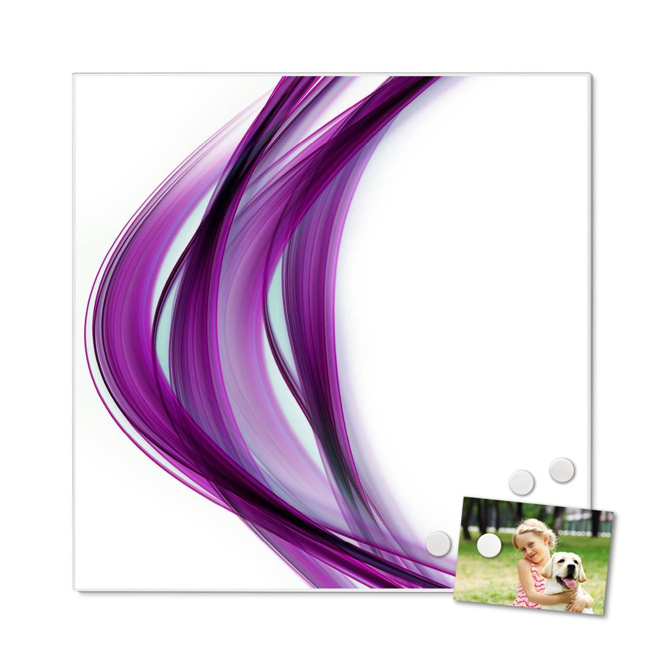 Die banjado Design Magnettafel mit Motiv Motiv Violet Element bringt Ordnung in Ihr Zettelchaos. Fotos, Termine, Notizen oder Rezepte lassen Sich hier stilvoll mit Magneten ordnen, Sie behalten alles im Blick. An der Pinnwand halten alle handelsüblichen Magnete. Mit dieser Pinnwand aus Metall haben Sie auch ohne Notizen und Magnete ein schönes Dekoelement. Das Quadratische Format bietet Ihnen ausreichend Platz um alle wichtigen Informationen im Blick zu behalten.