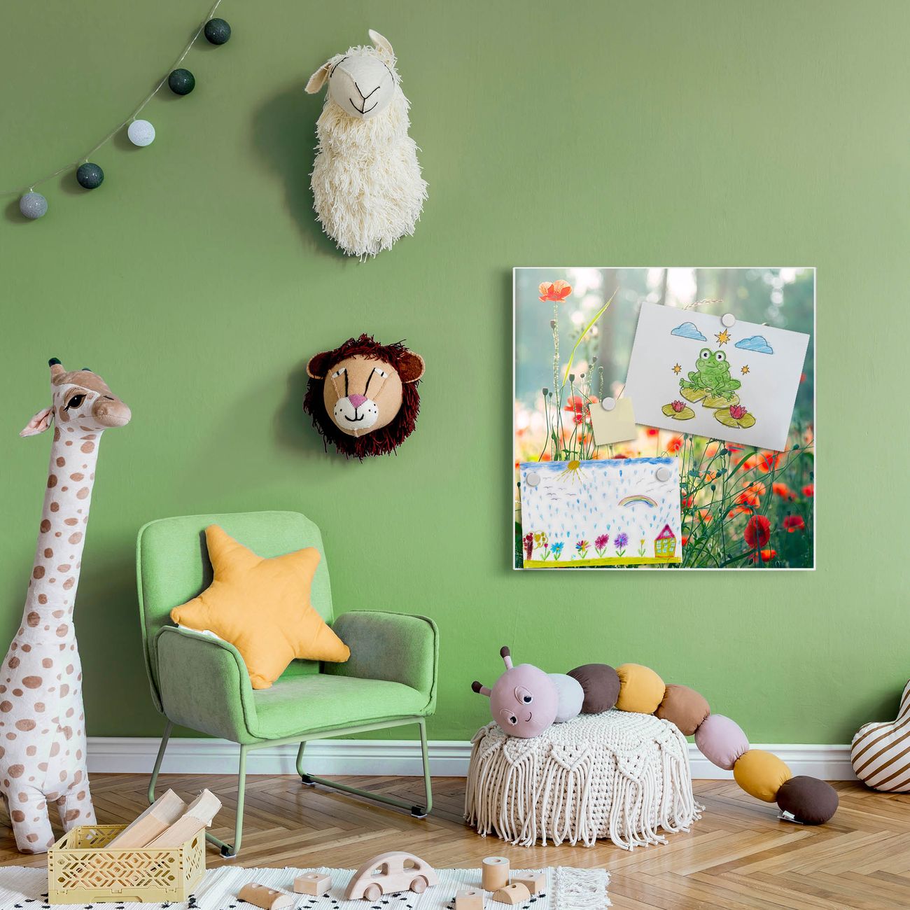Die banjado Design Magnettafel mit Motiv Motiv Waldmohn bringt Ordnung in Ihr Zettelchaos. Fotos, Termine, Notizen oder Rezepte lassen Sich hier stilvoll mit Magneten ordnen, Sie behalten alles im Blick. An der Pinnwand halten alle handelsüblichen Magnete. Mit dieser Pinnwand aus Metall haben Sie auch ohne Notizen und Magnete ein schönes Dekoelement. Das Quadratische Format bietet Ihnen ausreichend Platz um alle wichtigen Informationen im Blick zu behalten.