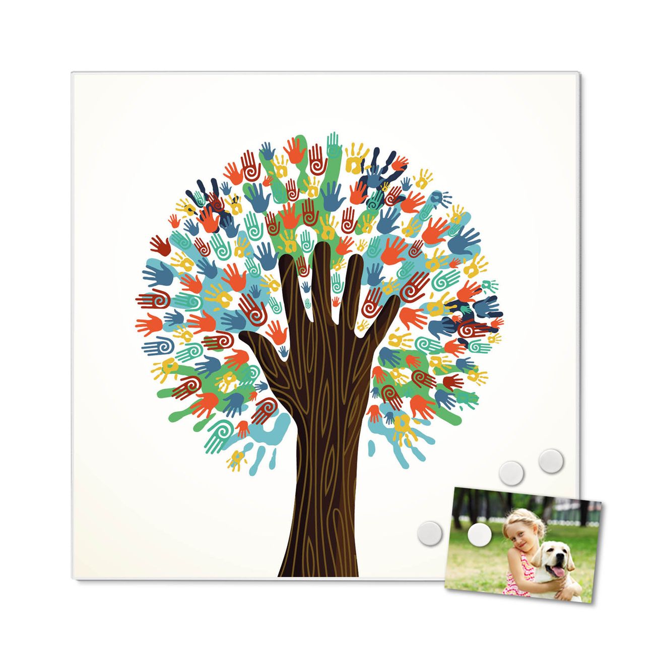 Die banjado Design Magnettafel mit Motiv Motiv We are the World bringt Ordnung in Ihr Zettelchaos. Fotos, Termine, Notizen oder Rezepte lassen Sich hier stilvoll mit Magneten ordnen, Sie behalten alles im Blick. An der Pinnwand halten alle handelsüblichen Magnete. Mit dieser Pinnwand aus Metall haben Sie auch ohne Notizen und Magnete ein schönes Dekoelement. Das Quadratische Format bietet Ihnen ausreichend Platz um alle wichtigen Informationen im Blick zu behalten.