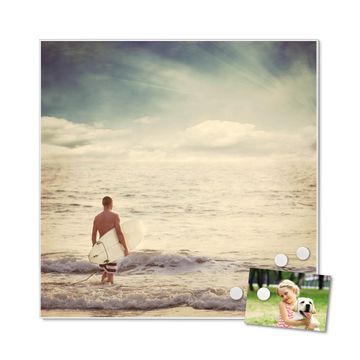 Die banjado Design Magnettafel mit Motiv Motiv Wellenreiten Gehen 2 bringt Ordnung in Ihr Zettelchaos. Fotos, Termine, Notizen oder Rezepte lassen Sich hier stilvoll mit Magneten ordnen, Sie behalten alles im Blick. An der Pinnwand halten alle handelsüblichen Magnete. Mit dieser Pinnwand aus Metall haben Sie auch ohne Notizen und Magnete ein schönes Dekoelement. Das Quadratische Format bietet Ihnen ausreichend Platz um alle wichtigen Informationen im Blick zu behalten.