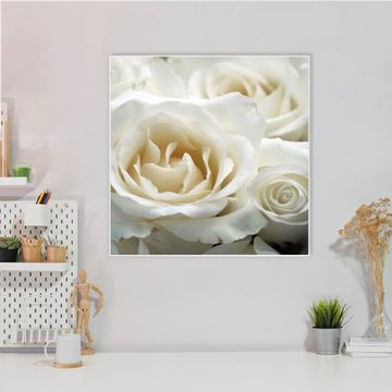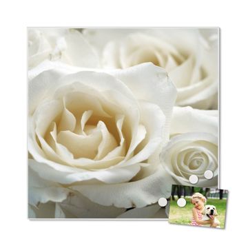 Die banjado Design Magnettafel mit Motiv Motiv White Roses bringt Ordnung in Ihr Zettelchaos. Fotos, Termine, Notizen oder Rezepte lassen Sich hier stilvoll mit Magneten ordnen, Sie behalten alles im Blick. An der Pinnwand halten alle handelsüblichen Magnete. Mit dieser Pinnwand aus Metall haben Sie auch ohne Notizen und Magnete ein schönes Dekoelement. Das Quadratische Format bietet Ihnen ausreichend Platz um alle wichtigen Informationen im Blick zu behalten.