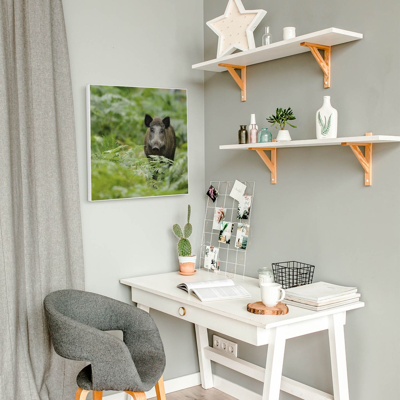 Die banjado Design Magnettafel mit Motiv Motiv Wildschwein bringt Ordnung in Ihr Zettelchaos. Fotos, Termine, Notizen oder Rezepte lassen Sich hier stilvoll mit Magneten ordnen, Sie behalten alles im Blick. An der Pinnwand halten alle handelsüblichen Magnete. Mit dieser Pinnwand aus Metall haben Sie auch ohne Notizen und Magnete ein schönes Dekoelement. Das Quadratische Format bietet Ihnen ausreichend Platz um alle wichtigen Informationen im Blick zu behalten.