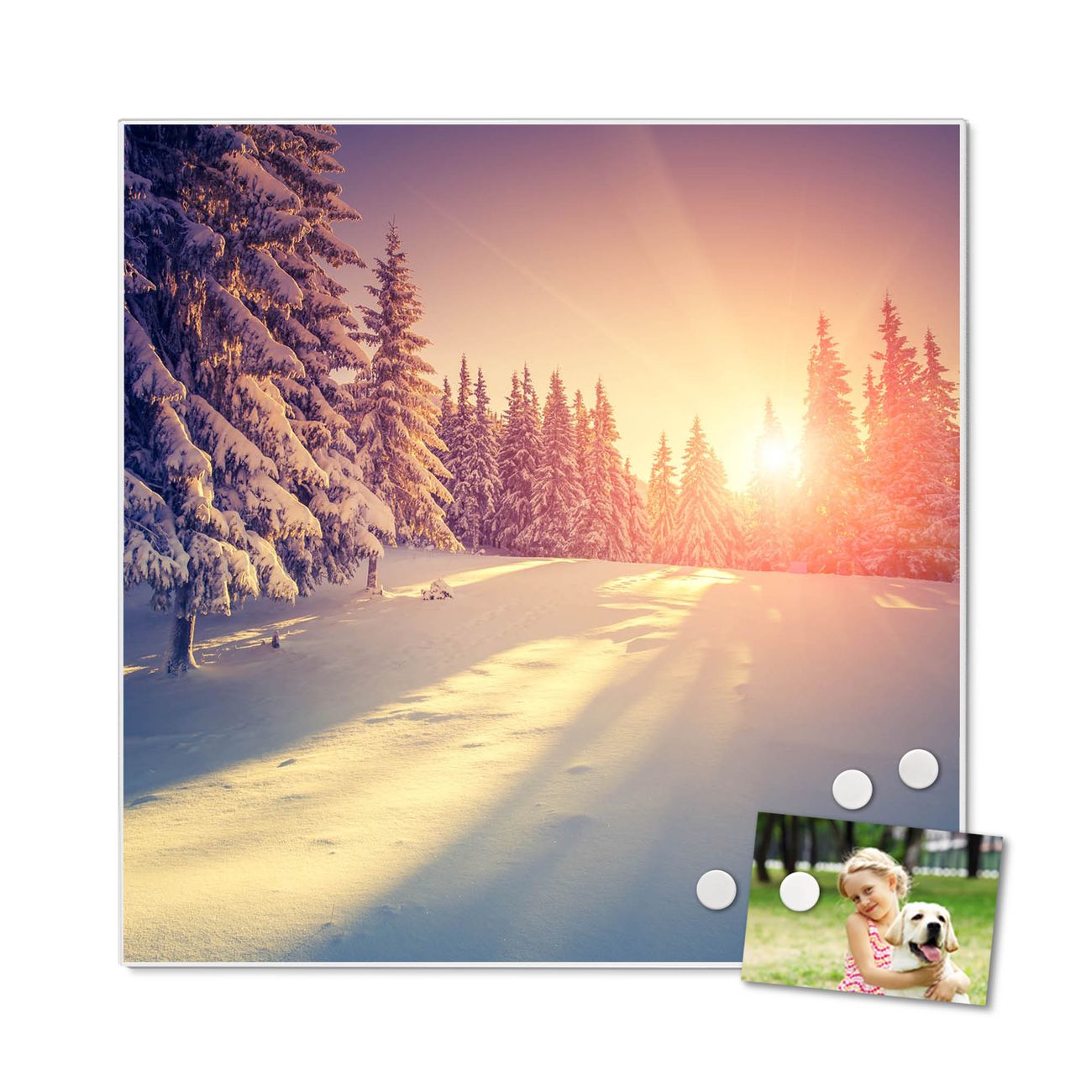 Die banjado Design Magnettafel mit Motiv Motiv Winterabend bringt Ordnung in Ihr Zettelchaos. Fotos, Termine, Notizen oder Rezepte lassen Sich hier stilvoll mit Magneten ordnen, Sie behalten alles im Blick. An der Pinnwand halten alle handelsüblichen Magnete. Mit dieser Pinnwand aus Metall haben Sie auch ohne Notizen und Magnete ein schönes Dekoelement. Das Quadratische Format bietet Ihnen ausreichend Platz um alle wichtigen Informationen im Blick zu behalten.