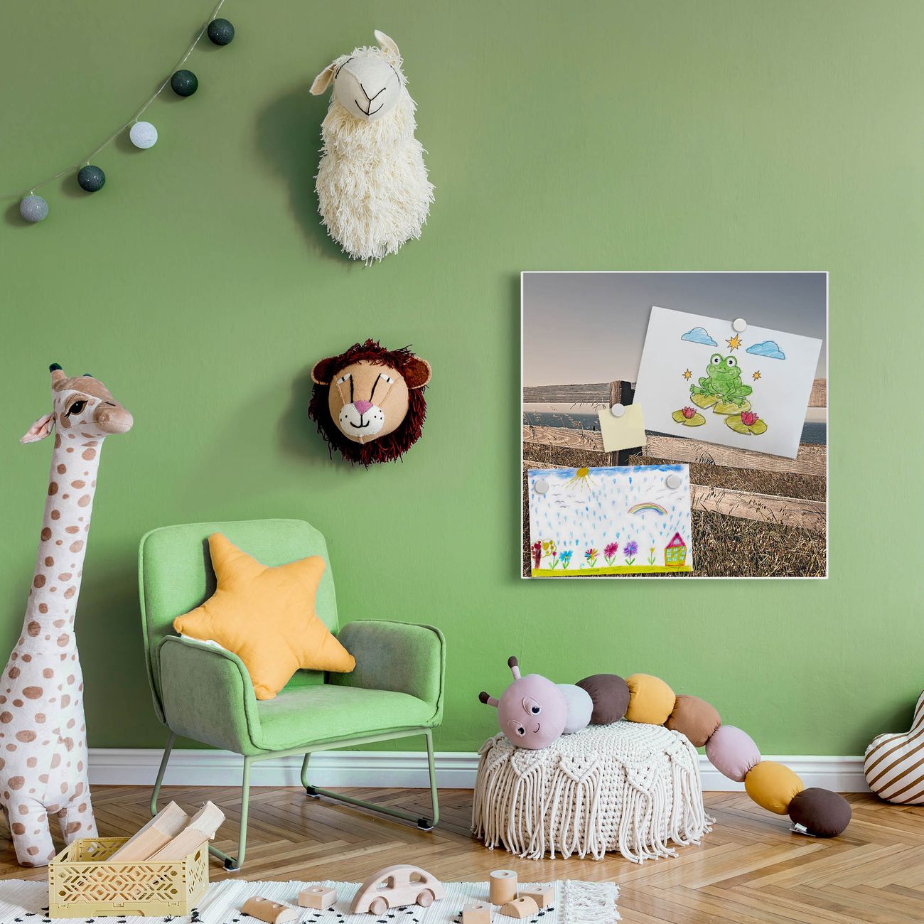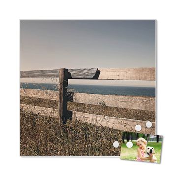 Die banjado Design Magnettafel mit Motiv Motiv Zaun am Meer bringt Ordnung in Ihr Zettelchaos. Fotos, Termine, Notizen oder Rezepte lassen Sich hier stilvoll mit Magneten ordnen, Sie behalten alles im Blick. An der Pinnwand halten alle handelsüblichen Magnete. Mit dieser Pinnwand aus Metall haben Sie auch ohne Notizen und Magnete ein schönes Dekoelement. Das Quadratische Format bietet Ihnen ausreichend Platz um alle wichtigen Informationen im Blick zu behalten.