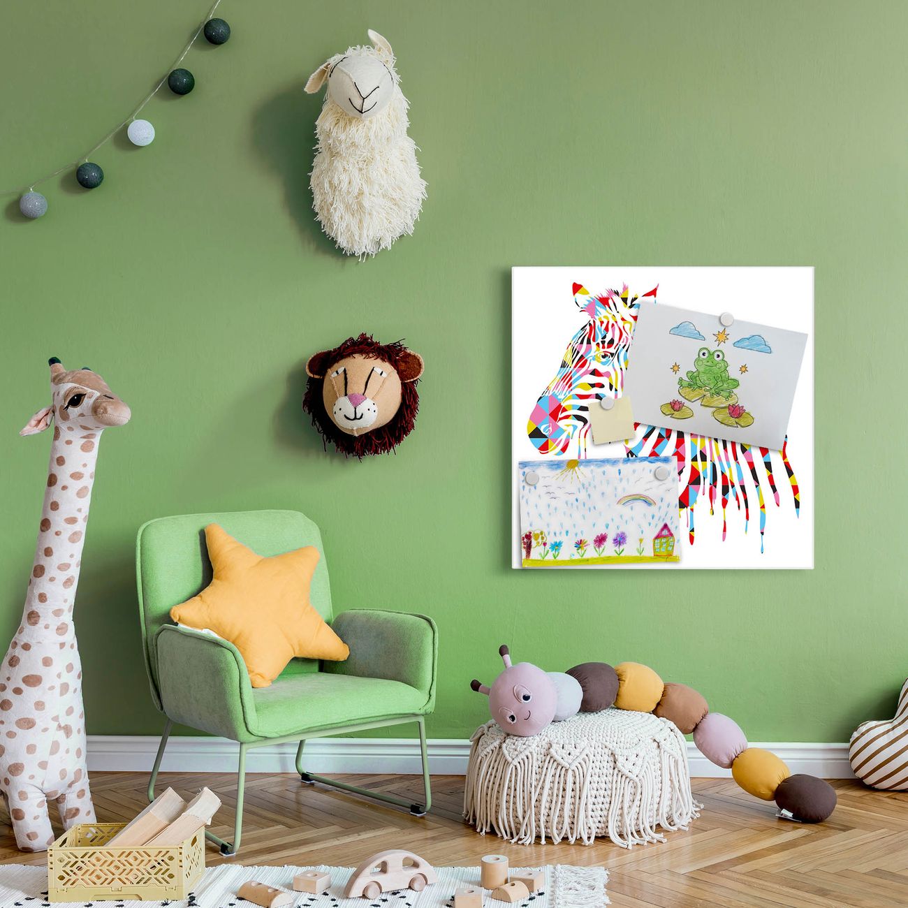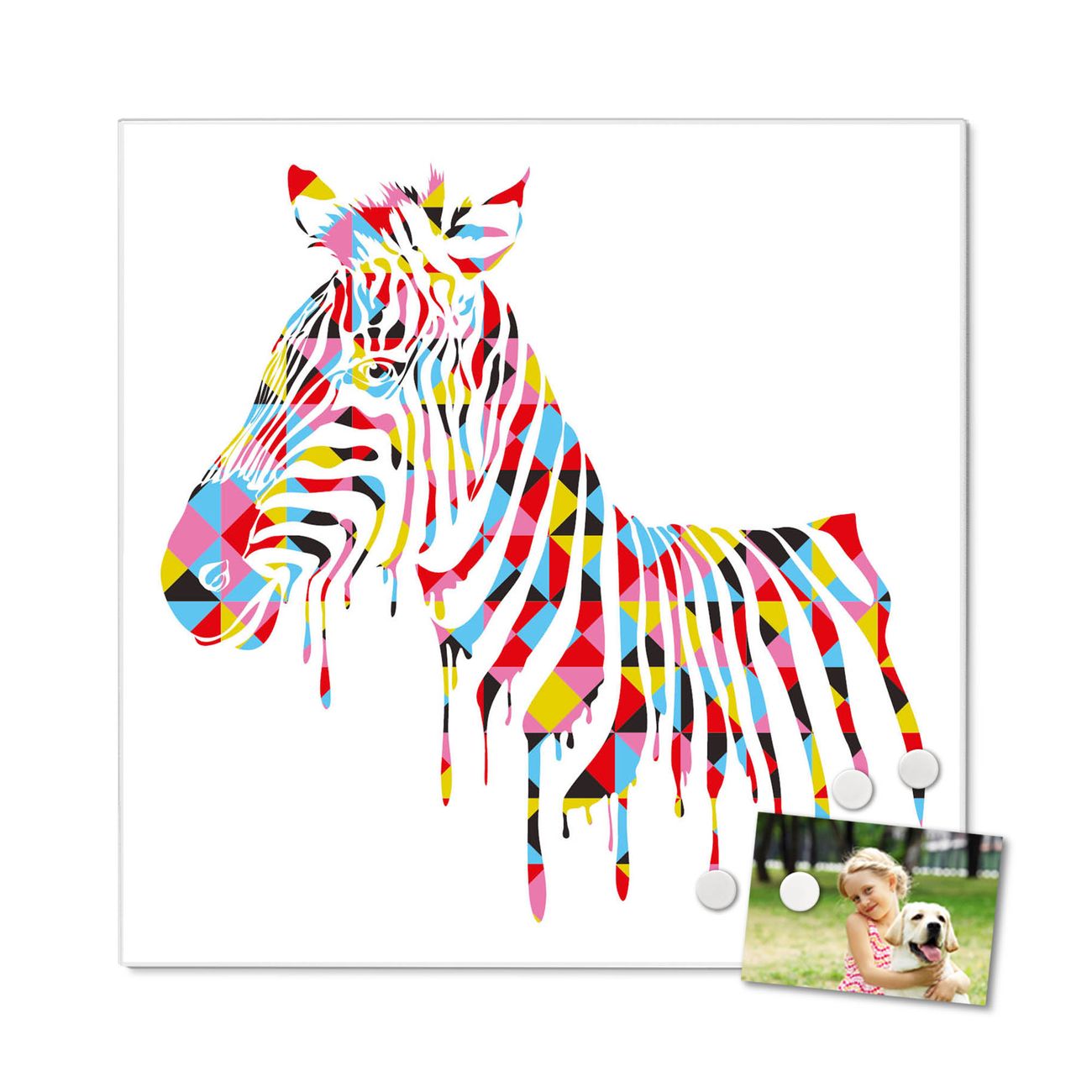Die banjado Design Magnettafel mit Motiv Motiv Zebra bringt Ordnung in Ihr Zettelchaos. Fotos, Termine, Notizen oder Rezepte lassen Sich hier stilvoll mit Magneten ordnen, Sie behalten alles im Blick. An der Pinnwand halten alle handelsüblichen Magnete. Mit dieser Pinnwand aus Metall haben Sie auch ohne Notizen und Magnete ein schönes Dekoelement. Das Quadratische Format bietet Ihnen ausreichend Platz um alle wichtigen Informationen im Blick zu behalten.