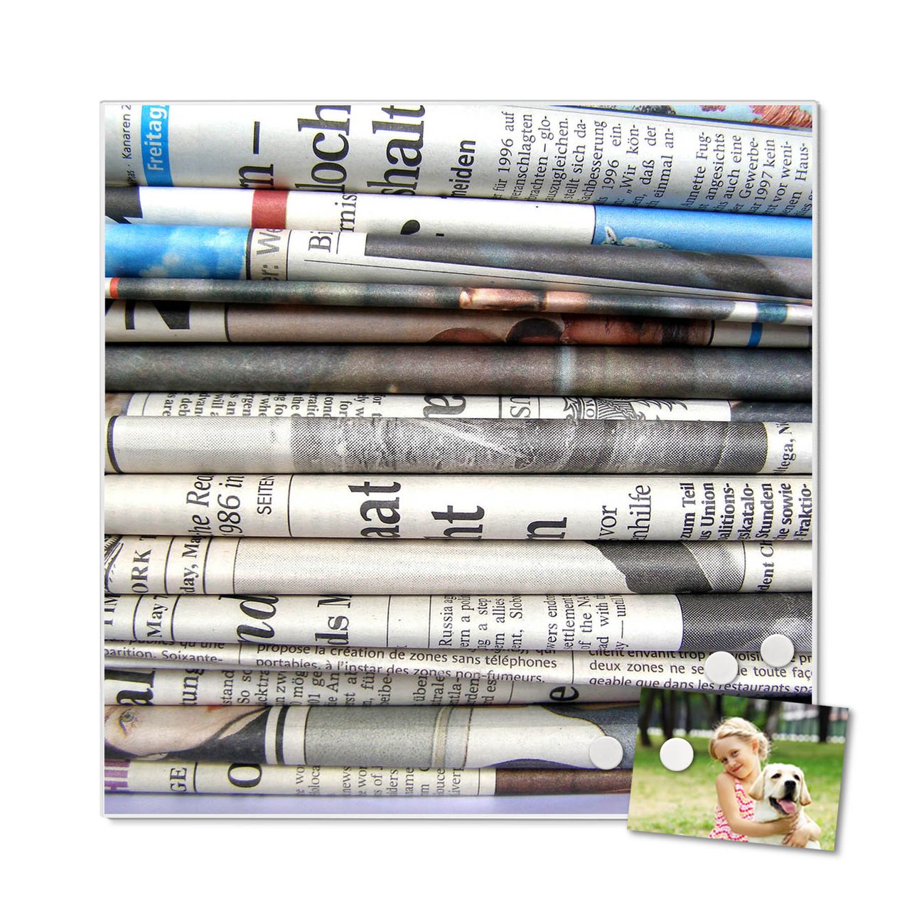 Stahl Magnettafel 50x50cm Zeitungen