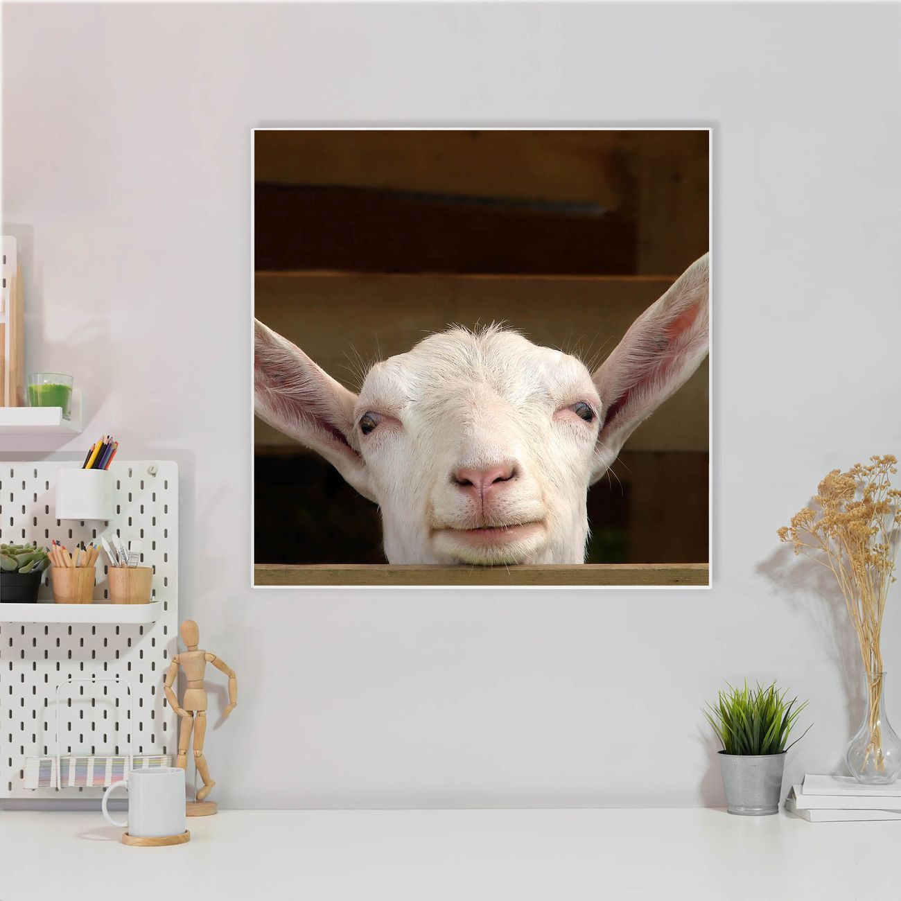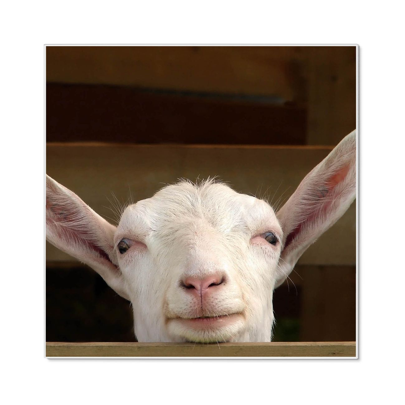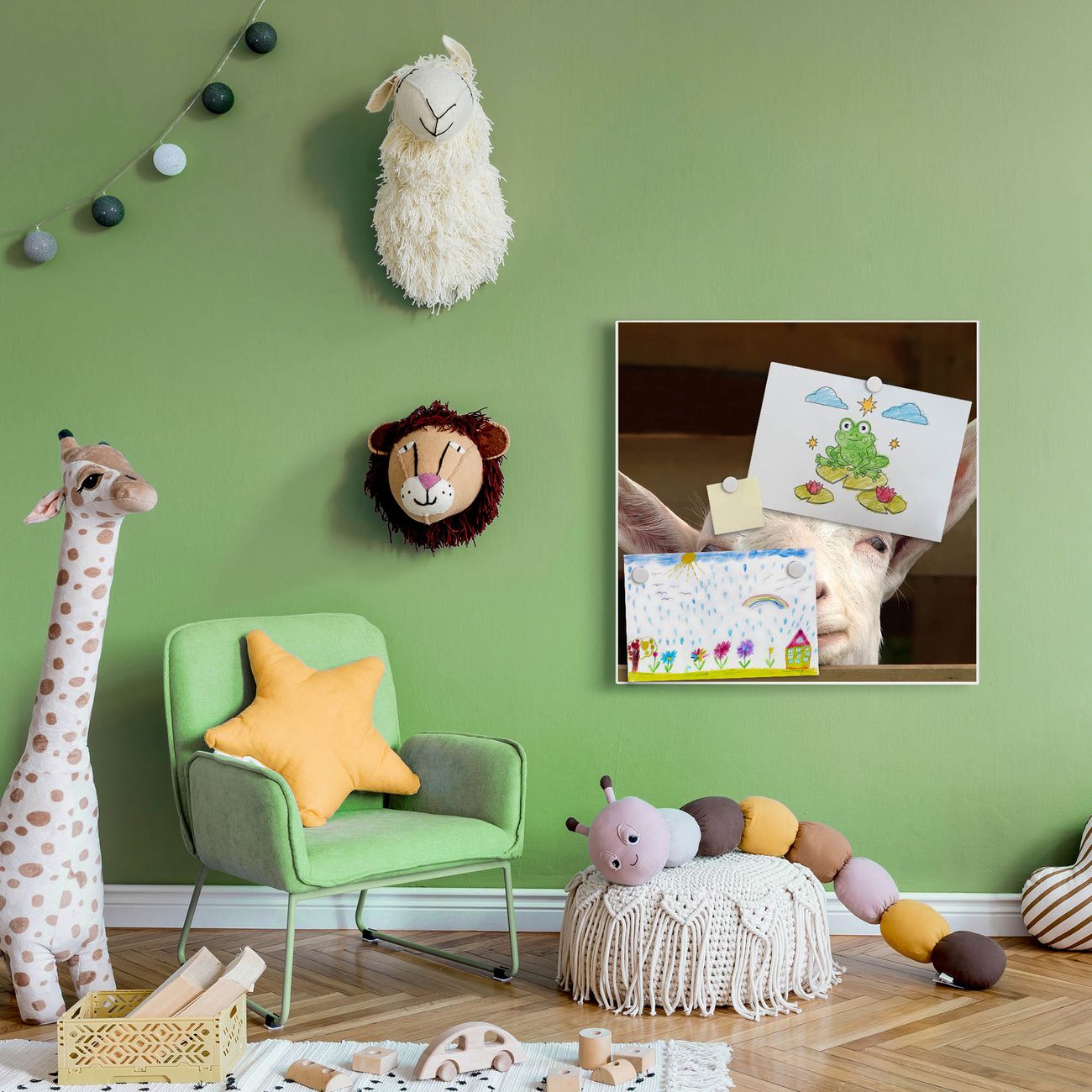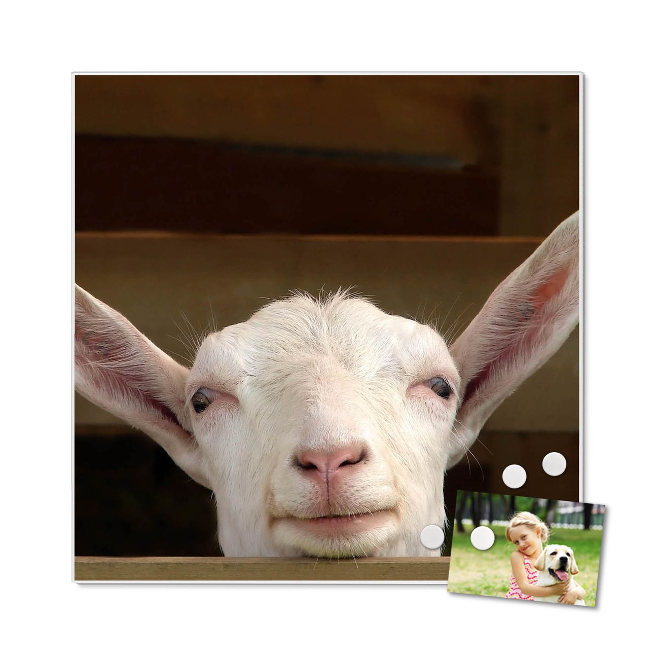Die banjado Design Magnettafel mit Motiv Motiv Ziege bringt Ordnung in Ihr Zettelchaos. Fotos, Termine, Notizen oder Rezepte lassen Sich hier stilvoll mit Magneten ordnen, Sie behalten alles im Blick. An der Pinnwand halten alle handelsüblichen Magnete. Mit dieser Pinnwand aus Metall haben Sie auch ohne Notizen und Magnete ein schönes Dekoelement. Das Quadratische Format bietet Ihnen ausreichend Platz um alle wichtigen Informationen im Blick zu behalten.