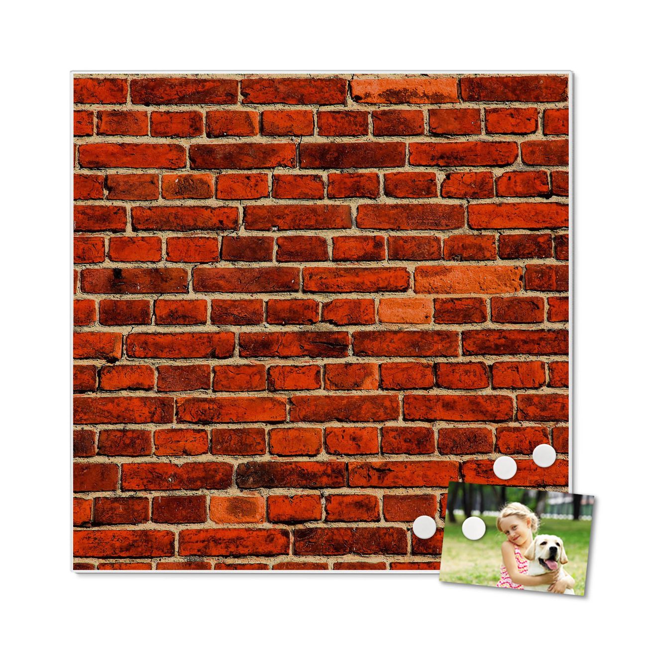 Die banjado Design Magnettafel mit Motiv Motiv Ziegelwand bringt Ordnung in Ihr Zettelchaos. Fotos, Termine, Notizen oder Rezepte lassen Sich hier stilvoll mit Magneten ordnen, Sie behalten alles im Blick. An der Pinnwand halten alle handelsüblichen Magnete. Mit dieser Pinnwand aus Metall haben Sie auch ohne Notizen und Magnete ein schönes Dekoelement. Das Quadratische Format bietet Ihnen ausreichend Platz um alle wichtigen Informationen im Blick zu behalten.