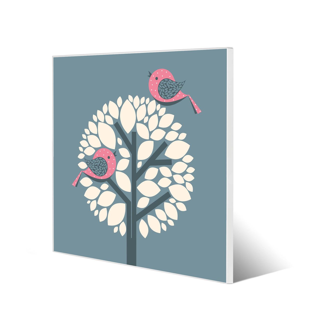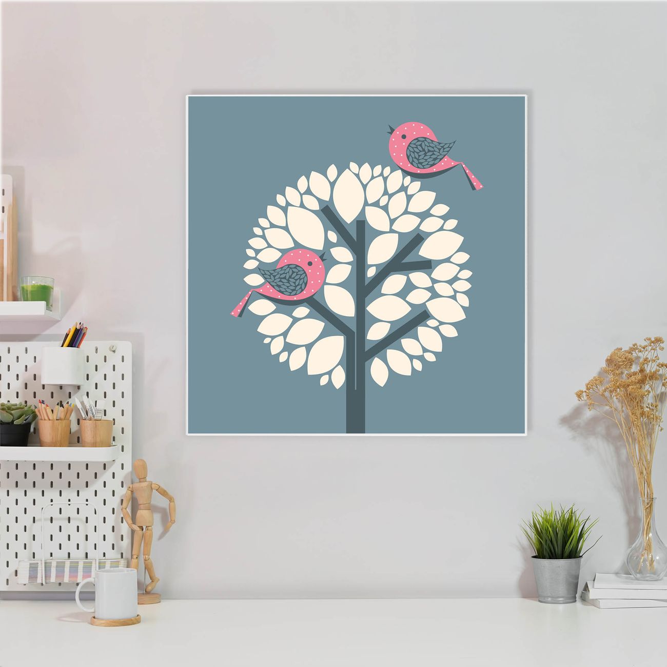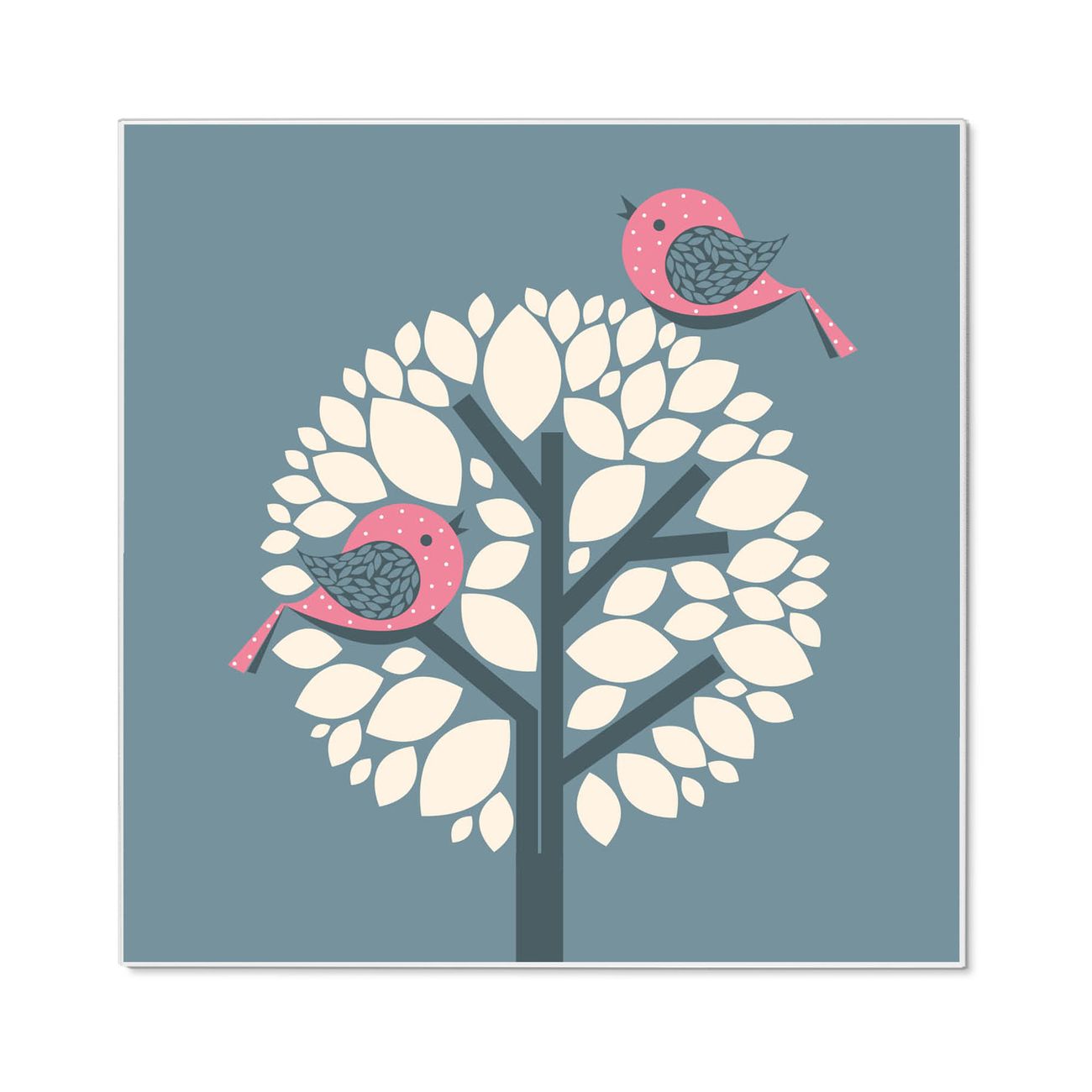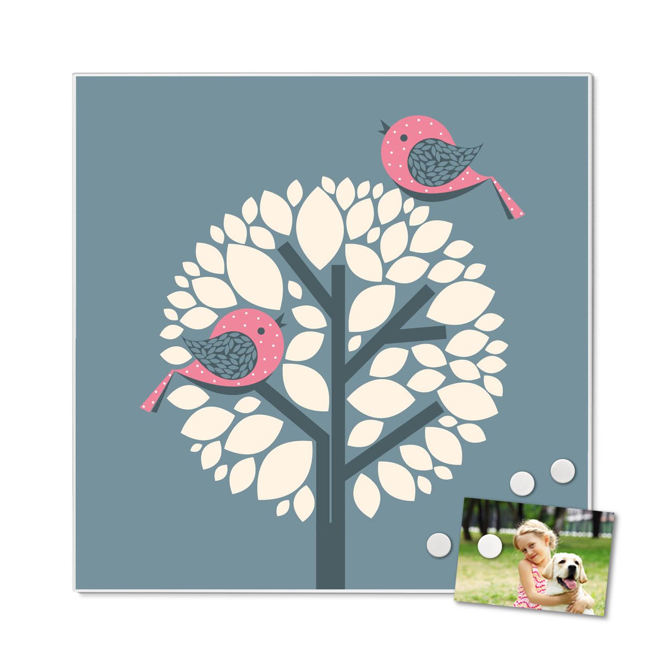 Stahl Magnettafel 50x50cm Zwei Rosa Vögel