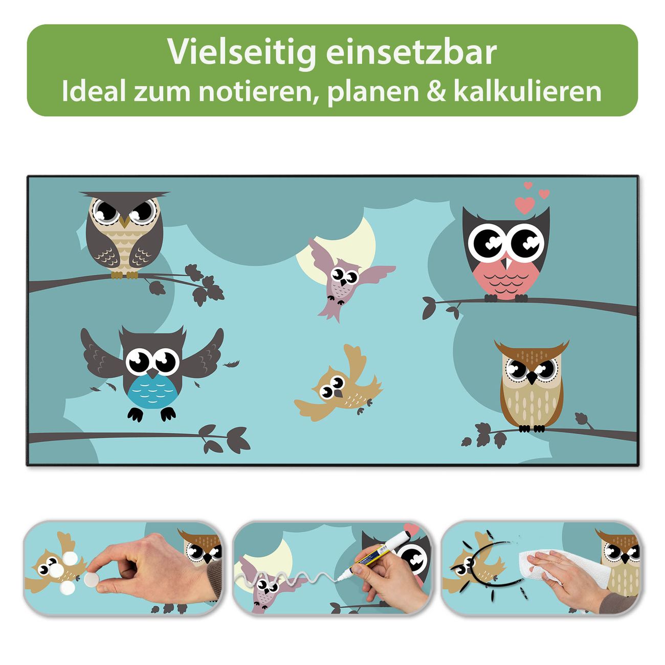 Metall Magnettafel beschreibbar 78x37cm Motiv Acht Eulen