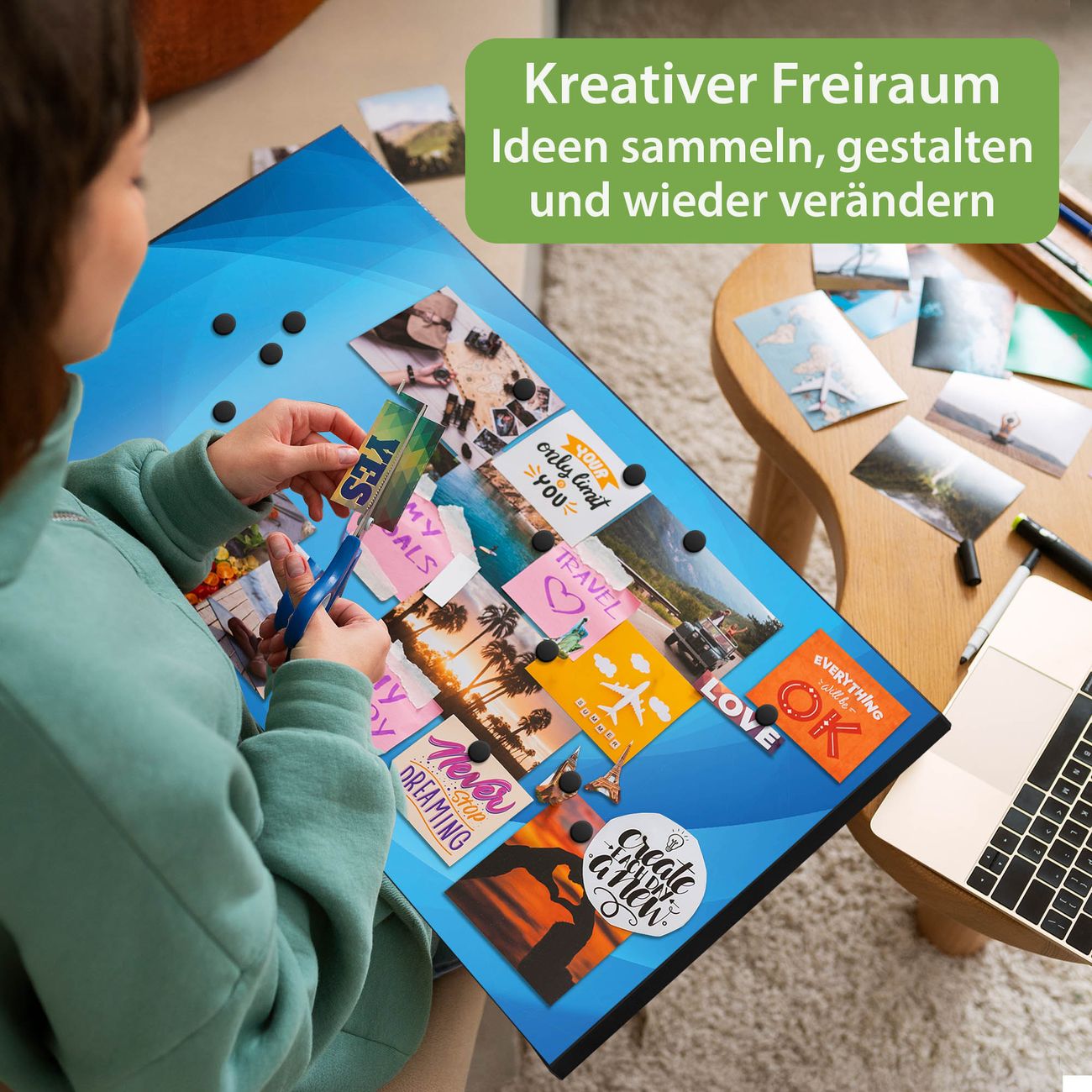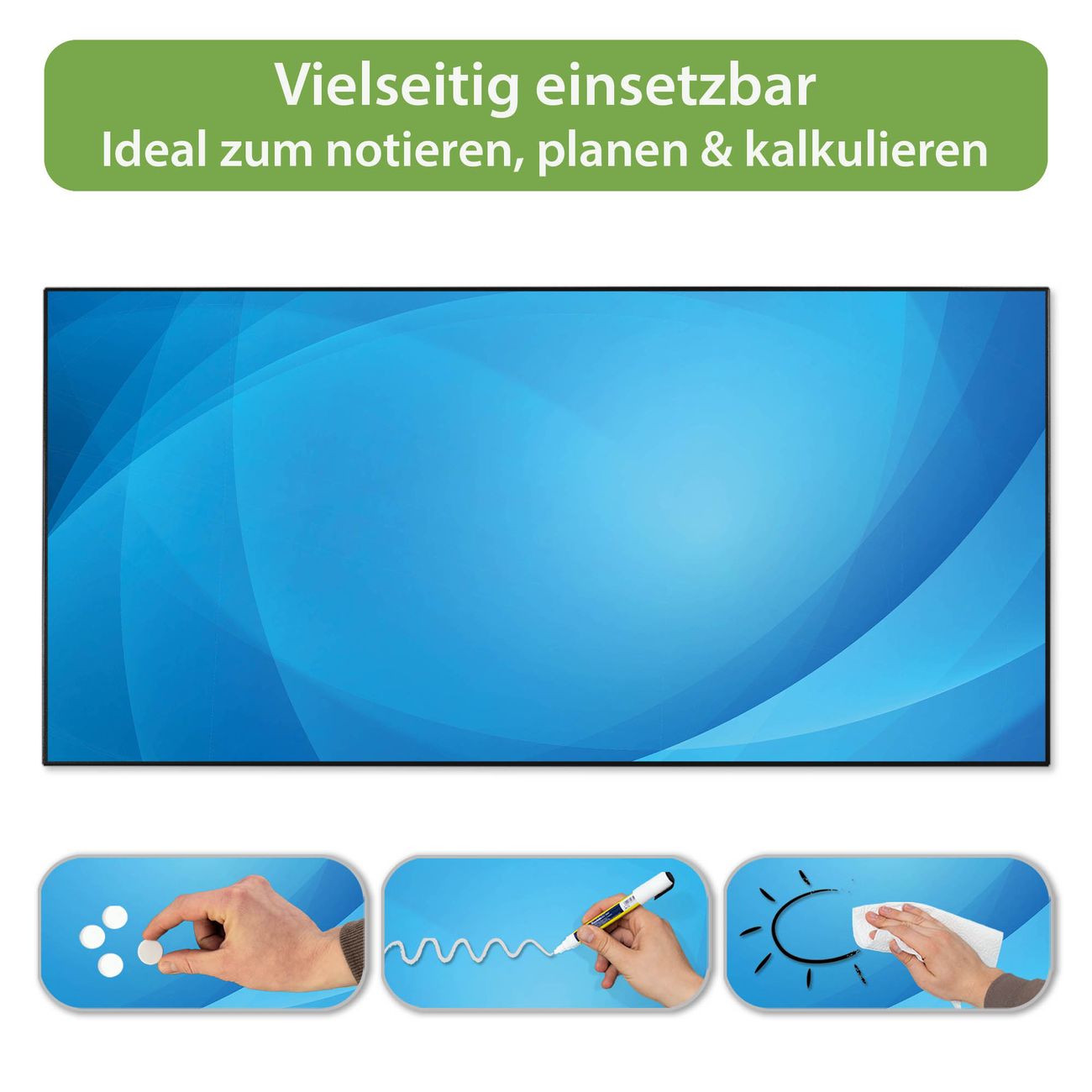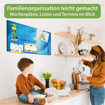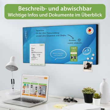 FUNKTION: Die banjado Magnettafel 78x37 cm im Design Motiv Blaues Licht vereint Funktionalität und modernes Wohndesign auf stilvolle Weise. Diese hochwertige Magnetwand aus Metall hilft Ihnen dabei, Notizen, Fotos, Termine, Einkaufslisten oder Rezepte übersichtlich zu organisieren. Als praktisches Memoboard sorgt sie für Struktur im Alltag und setzt gleichzeitig einen dekorativen Akzent an Ihrer Wand. DESIGN: Die Metalltafel besteht aus robustem, lackiertem Stahl und ist mit allen handelsüblichen Magneten nutzbar. Besonders praktisch ist die beschreibbare Oberfläche. Sie können die Magnettafel ganz einfach mit Kreidestiften beschriften und die Inhalte bei Bedarf mit einem feuchten Tuch wieder entfernen. So eignet sich das Memoboard ideal für Wochenpläne, Menüpläne, To Do Listen oder kreative Botschaften. DETAILS: Mit ihrem großzügigen Querformat von 78x37 cm bietet die Magnettafel ausreichend Platz für Ihre Organisation. Das Motiv Motiv Blaues Licht bringt eine warme, natürliche Optik in Küche, Flur, Büro oder Homeoffice und wirkt auch ohne Magnete oder Beschriftung wie ein modernes Wandbild. NUTZEN: Auf der Rückseite befinden sich vorgefertigte Löcher für eine schnelle und unkomplizierte Wandmontage. Jede banjado Magnettafel wird in Deutschland gefertigt und steht für Qualität, Langlebigkeit und liebevolle Verarbeitung. Dieses beschreibbare Memoboard ist die perfekte Kombination aus Metalltafel, Designobjekt und praktischer Magnetwand für Ihren Alltag. BANJADO: Wir sind ein kleines Team aus dem Herzen von Sachsen. Wir fertigen alle Artikel von Hand für Sie an, Sie erhalten keine preiswerte Importware. Auf Wunsch können Sie auch Ihr eigenes Foto auf die Magnettafel aufbringen, schreiben Sie uns an. Herzlichst, Ihr banjado-Team