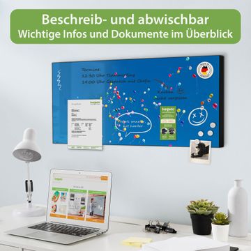 FUNKTION: Die banjado Magnettafel 78x37 cm im Design Motiv Bunte Luftballons vereint Funktionalität und modernes Wohndesign auf stilvolle Weise. Diese hochwertige Magnetwand aus Metall hilft Ihnen dabei, Notizen, Fotos, Termine, Einkaufslisten oder Rezepte übersichtlich zu organisieren. Als praktisches Memoboard sorgt sie für Struktur im Alltag und setzt gleichzeitig einen dekorativen Akzent an Ihrer Wand. DESIGN: Die Metalltafel besteht aus robustem, lackiertem Stahl und ist mit allen handelsüblichen Magneten nutzbar. Besonders praktisch ist die beschreibbare Oberfläche. Sie können die Magnettafel ganz einfach mit Kreidestiften beschriften und die Inhalte bei Bedarf mit einem feuchten Tuch wieder entfernen. So eignet sich das Memoboard ideal für Wochenpläne, Menüpläne, To Do Listen oder kreative Botschaften. DETAILS: Mit ihrem großzügigen Querformat von 78x37 cm bietet die Magnettafel ausreichend Platz für Ihre Organisation. Das Motiv Motiv Bunte Luftballons bringt eine warme, natürliche Optik in Küche, Flur, Büro oder Homeoffice und wirkt auch ohne Magnete oder Beschriftung wie ein modernes Wandbild. NUTZEN: Auf der Rückseite befinden sich vorgefertigte Löcher für eine schnelle und unkomplizierte Wandmontage. Jede banjado Magnettafel wird in Deutschland gefertigt und steht für Qualität, Langlebigkeit und liebevolle Verarbeitung. Dieses beschreibbare Memoboard ist die perfekte Kombination aus Metalltafel, Designobjekt und praktischer Magnetwand für Ihren Alltag. BANJADO: Wir sind ein kleines Team aus dem Herzen von Sachsen. Wir fertigen alle Artikel von Hand für Sie an, Sie erhalten keine preiswerte Importware. Auf Wunsch können Sie auch Ihr eigenes Foto auf die Magnettafel aufbringen, schreiben Sie uns an. Herzlichst, Ihr banjado-Team