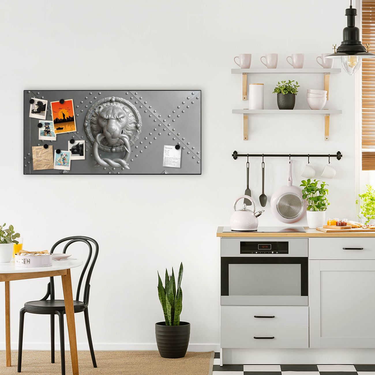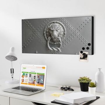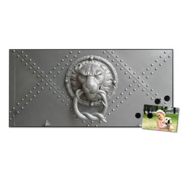 FUNKTION:  Die banjado Magnettafel mit Motiv Eisentor Motiv bringt Ordnung in Ihr Zettelchaos. Fotos, Termine, Notizen oder Rezepte lassen Sich hier stilvoll mit Magneten ordnen, Sie behalten alles im Blick. An der Design Magnetwand halten alle handesüblichen Magnete. DESIGN:  Die Metall Pinnwand mit dem Motiv Motiv Eisentor ist ein eleganter Begleiter im Alltag. Mit dieser Magnettafel haben Sie auch ohne Notizen und Magnete ein schönes Dekoelement. Das Format bietet Ihnen ausreichend Platz um alle wichtigen Informationen im Blick zu behalten. DETAILS: Die magnetische Pinnwand besteht aus silber-grau, weiß oder schwarz lackiertem Stahl. Sie hat eine Größe von 78cm x 37cm. Es befinden sich auf der Rückseite vorgefertigte Löcher die eine schnelle und unkomplizierte Anbringung ermöglichen. Das Motiv ist mit einem seidenmatten Laminat versehen und schützt so zusätzlich vor Kratzern. NUTZEN:  Sie können diese Magnettafel wunderbar als Wandbild nutzen, es halten alle handelsüblichen Magneten daran. Das Memoboard ist mit einem feuchten Lappen oder Schwamm abwischbar. Sie finden bei uns eine große Auswahl an passenden Magneten. BANJADO:  Wir sind ein kleines Team aus dem Herzen von Sachsen. Wir fertigen alle Artikel von Hand für Sie an, Sie erhalten keine preiswerte Importware. Auf Wunsch können Sie auch Ihr eigenes Foto auf die Magnettafel aufbringen, schreiben Sie uns an. Herzlichst, Ihr banjado-Team