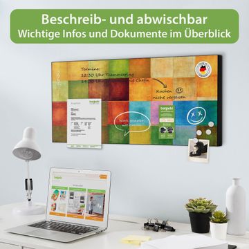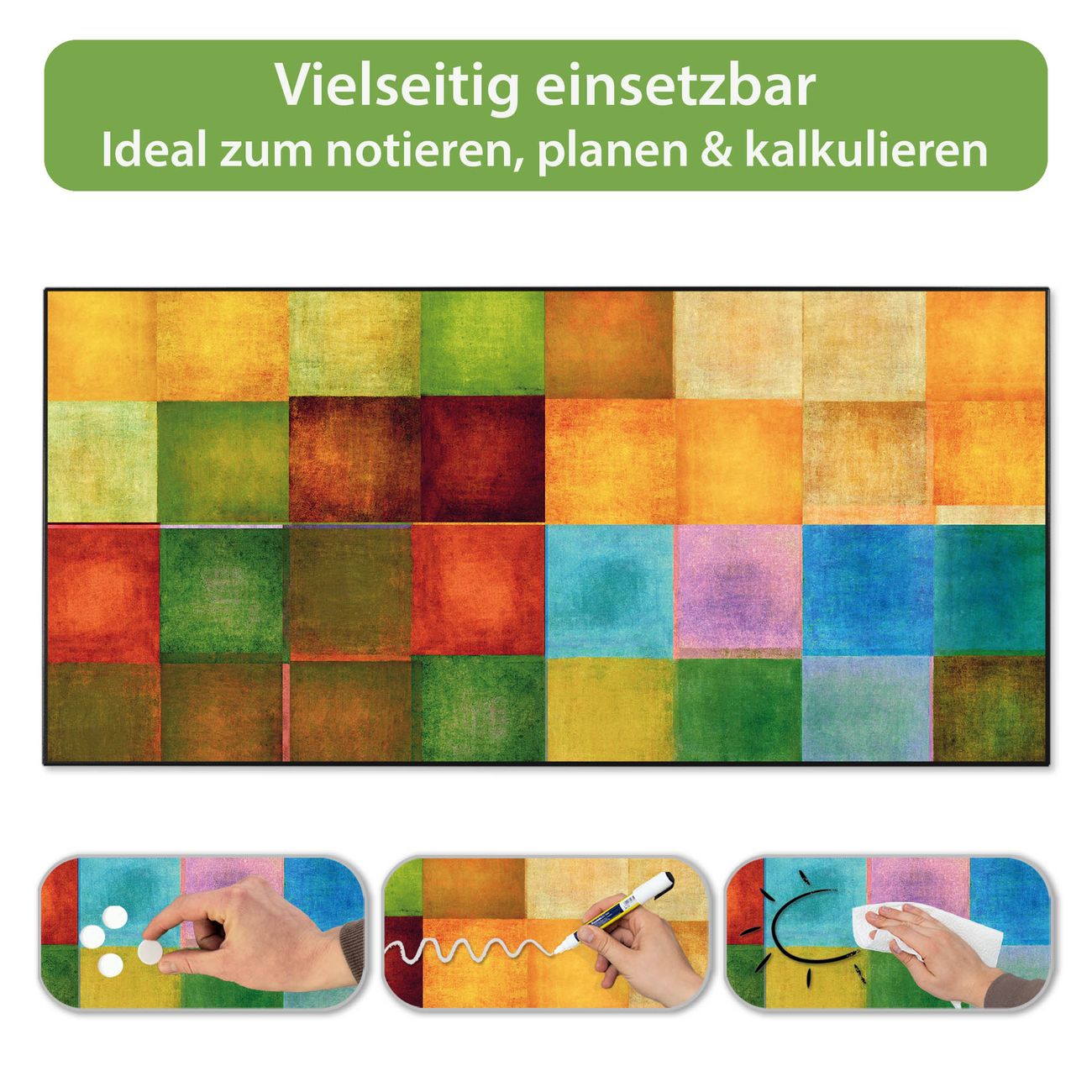 FUNKTION: Die banjado Magnettafel 78x37 cm im Design Motiv Farbkasten 2 vereint Funktionalität und modernes Wohndesign auf stilvolle Weise. Diese hochwertige Magnetwand aus Metall hilft Ihnen dabei, Notizen, Fotos, Termine, Einkaufslisten oder Rezepte übersichtlich zu organisieren. Als praktisches Memoboard sorgt sie für Struktur im Alltag und setzt gleichzeitig einen dekorativen Akzent an Ihrer Wand. DESIGN: Die Metalltafel besteht aus robustem, lackiertem Stahl und ist mit allen handelsüblichen Magneten nutzbar. Besonders praktisch ist die beschreibbare Oberfläche. Sie können die Magnettafel ganz einfach mit Kreidestiften beschriften und die Inhalte bei Bedarf mit einem feuchten Tuch wieder entfernen. So eignet sich das Memoboard ideal für Wochenpläne, Menüpläne, To Do Listen oder kreative Botschaften. DETAILS: Mit ihrem großzügigen Querformat von 78x37 cm bietet die Magnettafel ausreichend Platz für Ihre Organisation. Das Motiv Motiv Farbkasten 2 bringt eine warme, natürliche Optik in Küche, Flur, Büro oder Homeoffice und wirkt auch ohne Magnete oder Beschriftung wie ein modernes Wandbild. NUTZEN: Auf der Rückseite befinden sich vorgefertigte Löcher für eine schnelle und unkomplizierte Wandmontage. Jede banjado Magnettafel wird in Deutschland gefertigt und steht für Qualität, Langlebigkeit und liebevolle Verarbeitung. Dieses beschreibbare Memoboard ist die perfekte Kombination aus Metalltafel, Designobjekt und praktischer Magnetwand für Ihren Alltag. BANJADO: Wir sind ein kleines Team aus dem Herzen von Sachsen. Wir fertigen alle Artikel von Hand für Sie an, Sie erhalten keine preiswerte Importware. Auf Wunsch können Sie auch Ihr eigenes Foto auf die Magnettafel aufbringen, schreiben Sie uns an. Herzlichst, Ihr banjado-Team