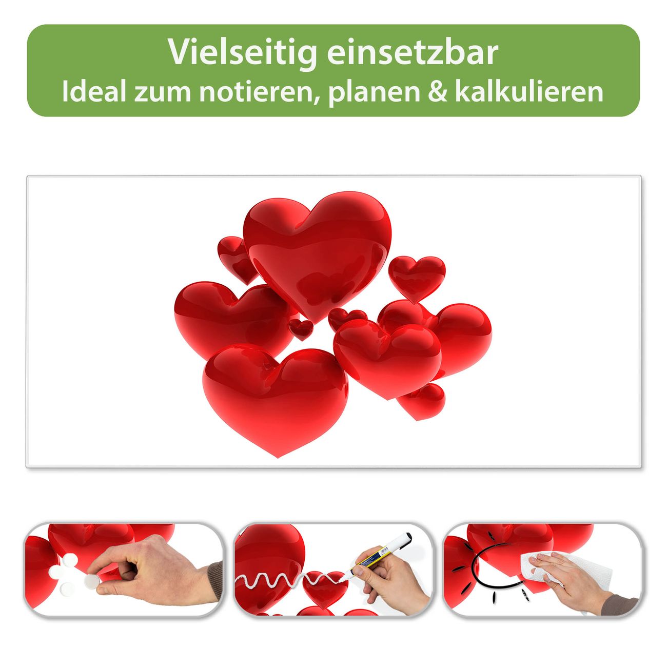 Metall Magnettafel beschreibbar 78x37cm Motiv Fliegende Herzen