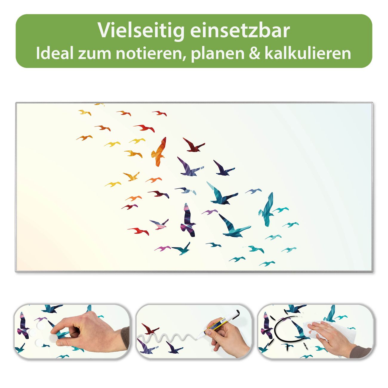 Metall Magnettafel beschreibbar 78x37cm Motiv Fliegende Vögel