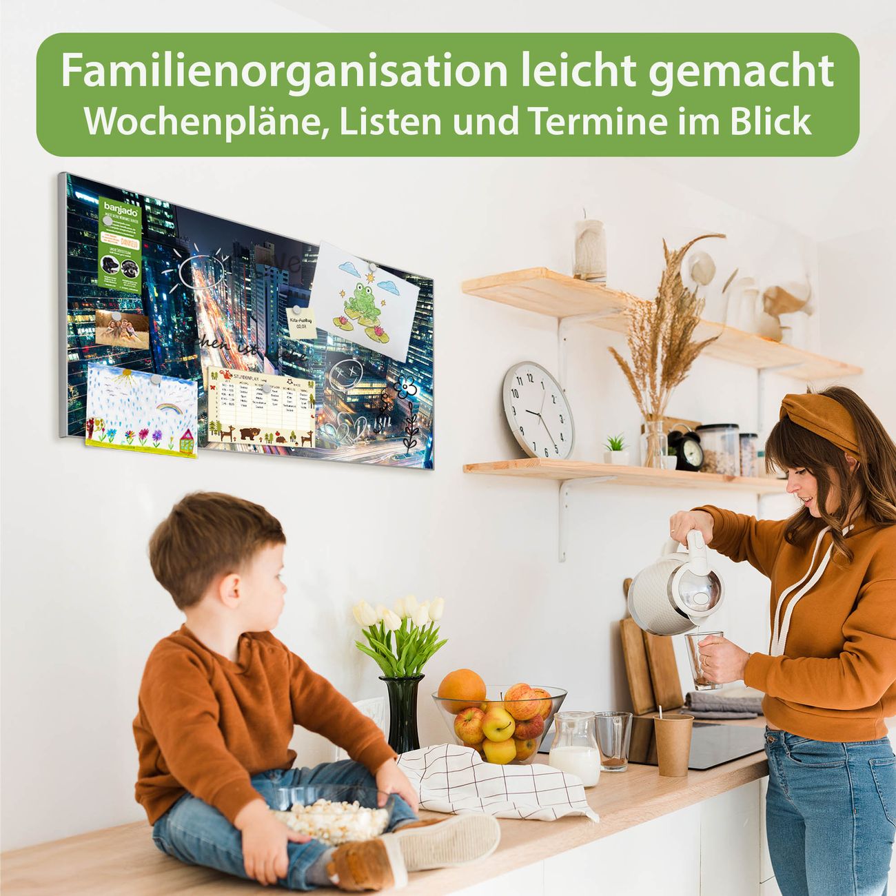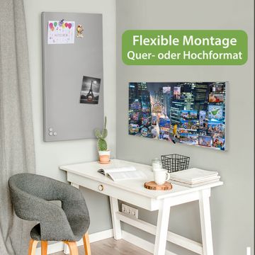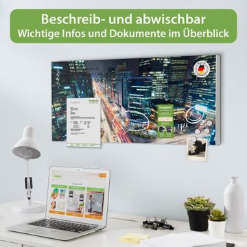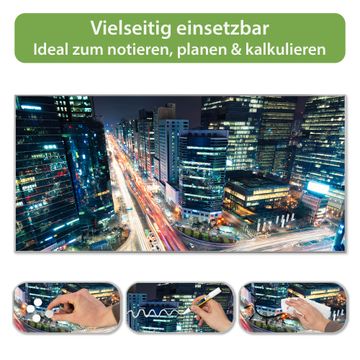 FUNKTION: Die banjado Magnettafel 78x37 cm im Design Motiv Gangnam Bei Nacht vereint Funktionalität und modernes Wohndesign auf stilvolle Weise. Diese hochwertige Magnetwand aus Metall hilft Ihnen dabei, Notizen, Fotos, Termine, Einkaufslisten oder Rezepte übersichtlich zu organisieren. Als praktisches Memoboard sorgt sie für Struktur im Alltag und setzt gleichzeitig einen dekorativen Akzent an Ihrer Wand. DESIGN: Die Metalltafel besteht aus robustem, lackiertem Stahl und ist mit allen handelsüblichen Magneten nutzbar. Besonders praktisch ist die beschreibbare Oberfläche. Sie können die Magnettafel ganz einfach mit Kreidestiften beschriften und die Inhalte bei Bedarf mit einem feuchten Tuch wieder entfernen. So eignet sich das Memoboard ideal für Wochenpläne, Menüpläne, To Do Listen oder kreative Botschaften. DETAILS: Mit ihrem großzügigen Querformat von 78x37 cm bietet die Magnettafel ausreichend Platz für Ihre Organisation. Das Motiv Motiv Gangnam Bei Nacht bringt eine warme, natürliche Optik in Küche, Flur, Büro oder Homeoffice und wirkt auch ohne Magnete oder Beschriftung wie ein modernes Wandbild. NUTZEN: Auf der Rückseite befinden sich vorgefertigte Löcher für eine schnelle und unkomplizierte Wandmontage. Jede banjado Magnettafel wird in Deutschland gefertigt und steht für Qualität, Langlebigkeit und liebevolle Verarbeitung. Dieses beschreibbare Memoboard ist die perfekte Kombination aus Metalltafel, Designobjekt und praktischer Magnetwand für Ihren Alltag. BANJADO: Wir sind ein kleines Team aus dem Herzen von Sachsen. Wir fertigen alle Artikel von Hand für Sie an, Sie erhalten keine preiswerte Importware. Auf Wunsch können Sie auch Ihr eigenes Foto auf die Magnettafel aufbringen, schreiben Sie uns an. Herzlichst, Ihr banjado-Team