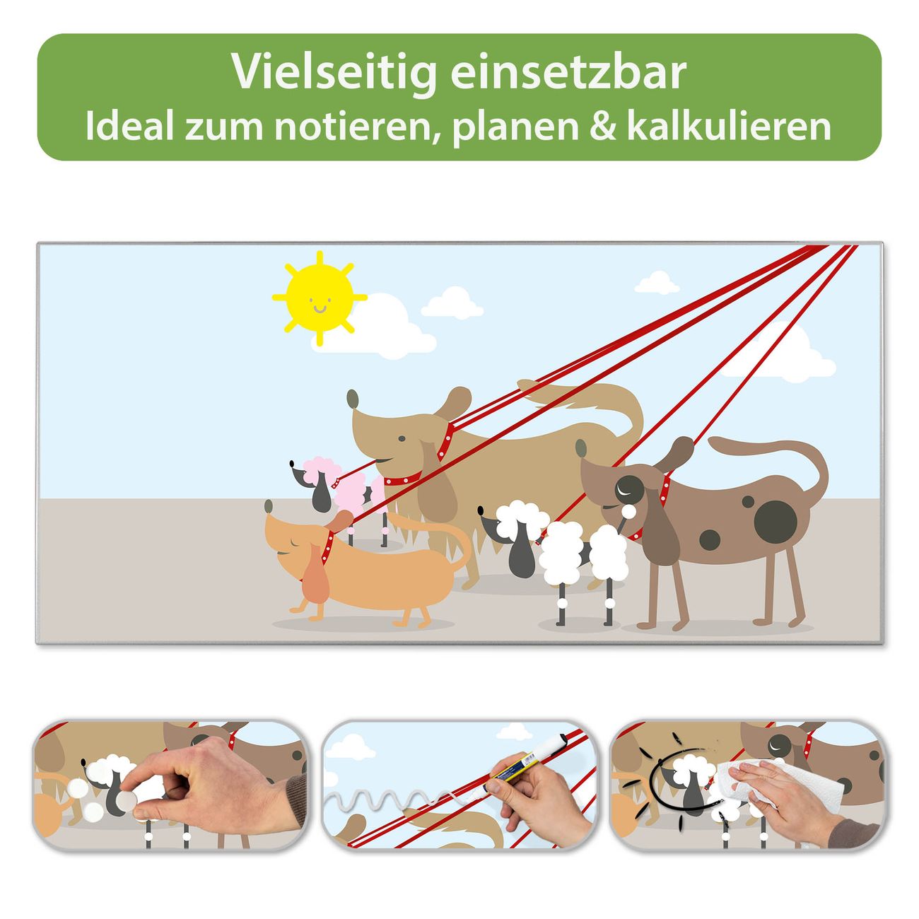 Metall Magnettafel beschreibbar 78x37cm Motiv Gassi Gehen
