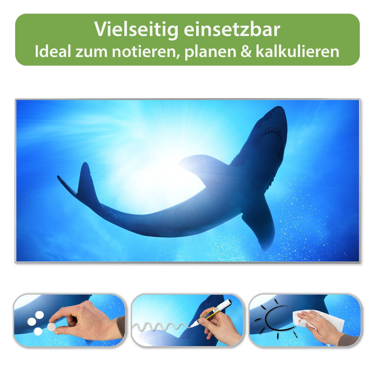 Metall Magnettafel beschreibbar 78x37cm Motiv Hai