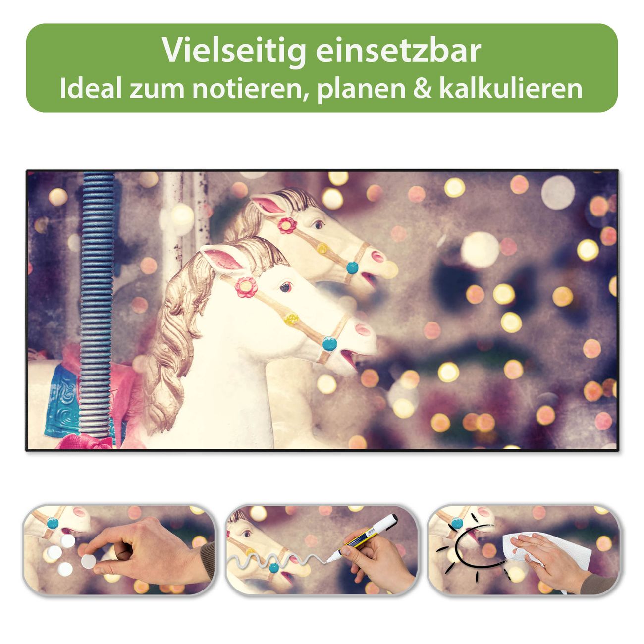 Metall Magnettafel beschreibbar 78x37cm Motiv Kinderkarussell