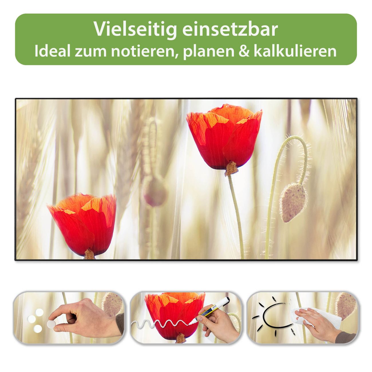 Metall Magnettafel beschreibbar 78x37cm Motiv Klatschmohn
