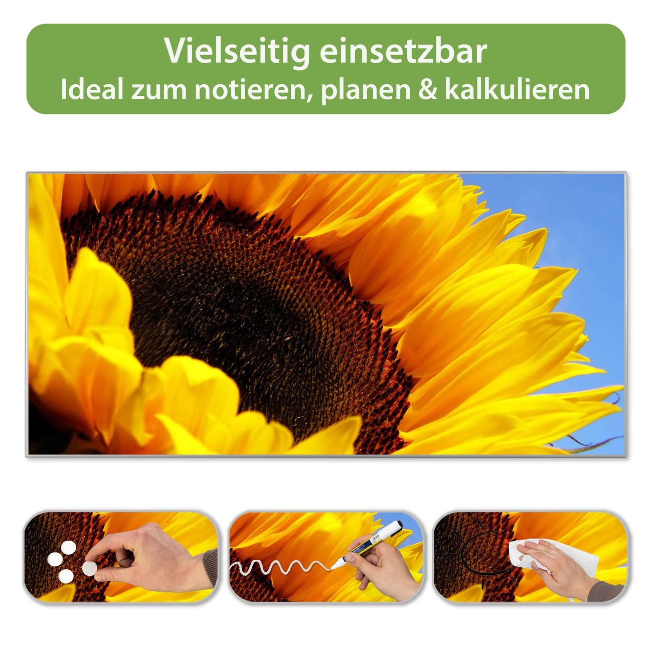 Metall Magnettafel beschreibbar 78x37cm Motiv Sonnenblume