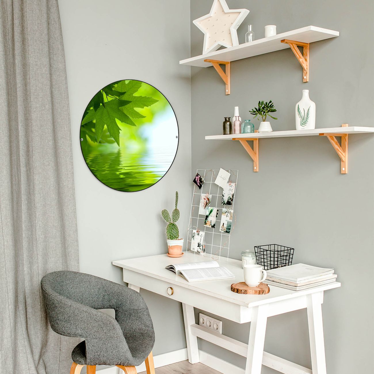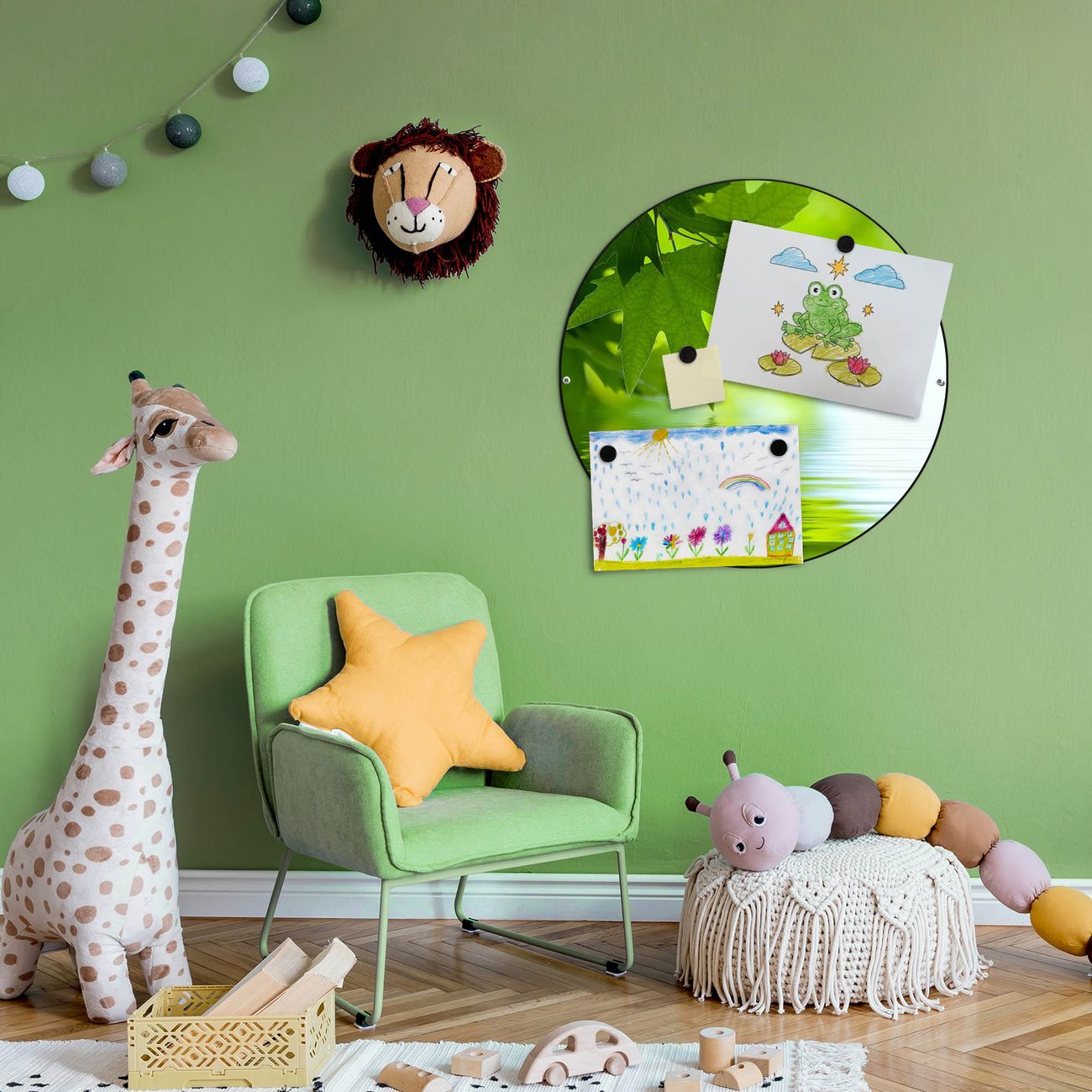 FUNKTION / DESIGN Die banjado Magnettafel mit dem Motiv Motiv Blättertraum bringt Ordnung in Ihr Zettelchaos. Fotos, Termine, Notizen oder Rezepte lassen Sich hier stilvoll mit Magneten ordnen, Sie behalten alles im Blick. Die Design Magnetwand ist beschreibbar und wieder abwischbar. Mit dieser Pinnwand haben Sie auch ohne Notizen und Magneten ein schönes Dekoelement. Das Format bietet Ihnen ausreichend Platz um alle wichtigen Informationen im Blick zu behalten. DETAILS / NUTZEN Die magnetische Metall Pinnwand besteht aus schwarz lackiertem Stahl. Sie hat einen Durchmesser von 47cm. Es befinden sich an den Seiten zwei vorgefertigte Löcher die eine schnelle und unkomplizierte Anbringung ermöglichen. Das Motiv ist mit einem seidenmatten Laminat versehen und schützt so zusätzlich vor Kratzern. Es halten alle handelsüblichen Magneten daran. Wir sind ein kleines Team aus dem Herzen von Sachsen. Wir fertigen alle Artikel von Hand für Sie an, Sie erhalten keine preiswerte Importware. Auf Wunsch können Sie auch Ihr eigenes Foto auf die Magnettafel aufbringen, schreiben Sie uns an.