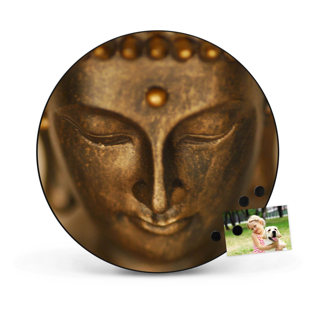 Stahl Magnettafel rund 47cm Buddha Gold