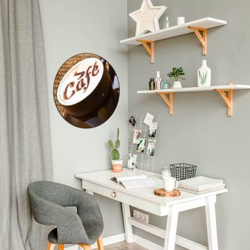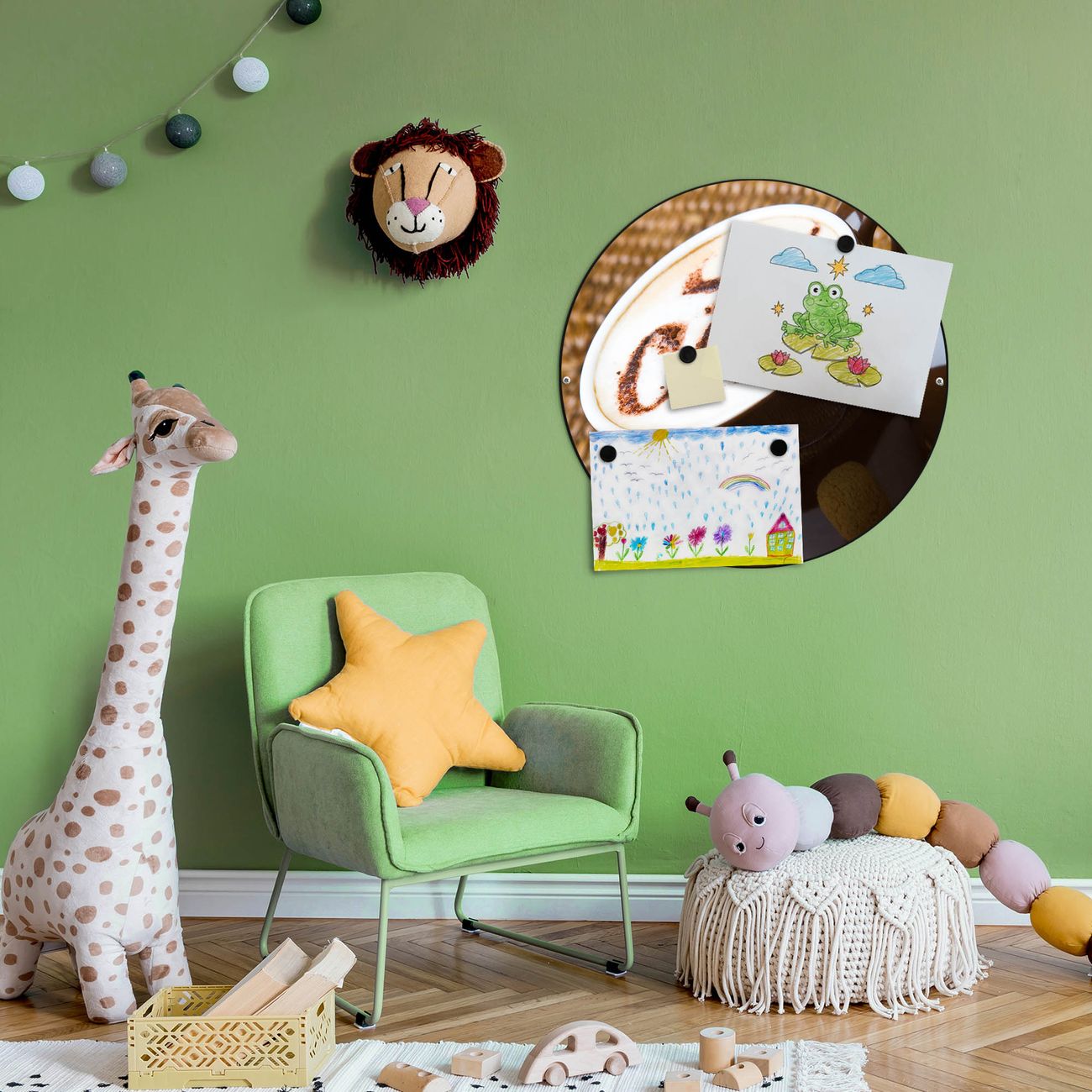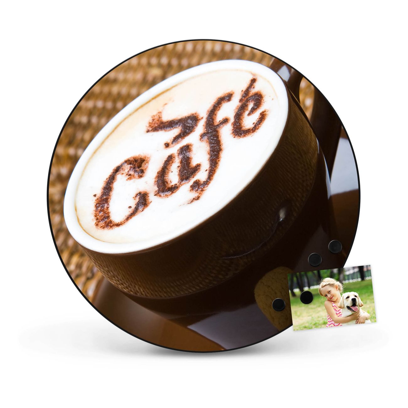 FUNKTION / DESIGN Die banjado Magnettafel mit dem Motiv Motiv Cafe bringt Ordnung in Ihr Zettelchaos. Fotos, Termine, Notizen oder Rezepte lassen Sich hier stilvoll mit Magneten ordnen, Sie behalten alles im Blick. Die Design Magnetwand ist beschreibbar und wieder abwischbar. Mit dieser Pinnwand haben Sie auch ohne Notizen und Magneten ein schönes Dekoelement. Das Format bietet Ihnen ausreichend Platz um alle wichtigen Informationen im Blick zu behalten. DETAILS / NUTZEN Die magnetische Metall Pinnwand besteht aus schwarz lackiertem Stahl. Sie hat einen Durchmesser von 47cm. Es befinden sich an den Seiten zwei vorgefertigte Löcher die eine schnelle und unkomplizierte Anbringung ermöglichen. Das Motiv ist mit einem seidenmatten Laminat versehen und schützt so zusätzlich vor Kratzern. Es halten alle handelsüblichen Magneten daran. Wir sind ein kleines Team aus dem Herzen von Sachsen. Wir fertigen alle Artikel von Hand für Sie an, Sie erhalten keine preiswerte Importware. Auf Wunsch können Sie auch Ihr eigenes Foto auf die Magnettafel aufbringen, schreiben Sie uns an.
