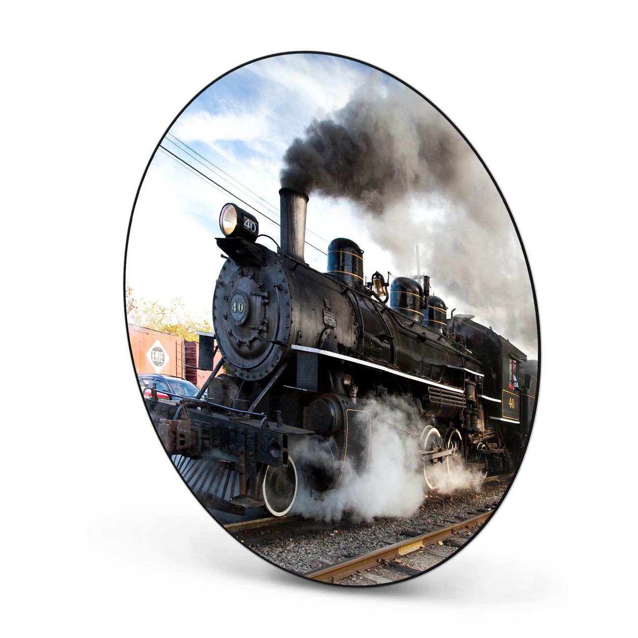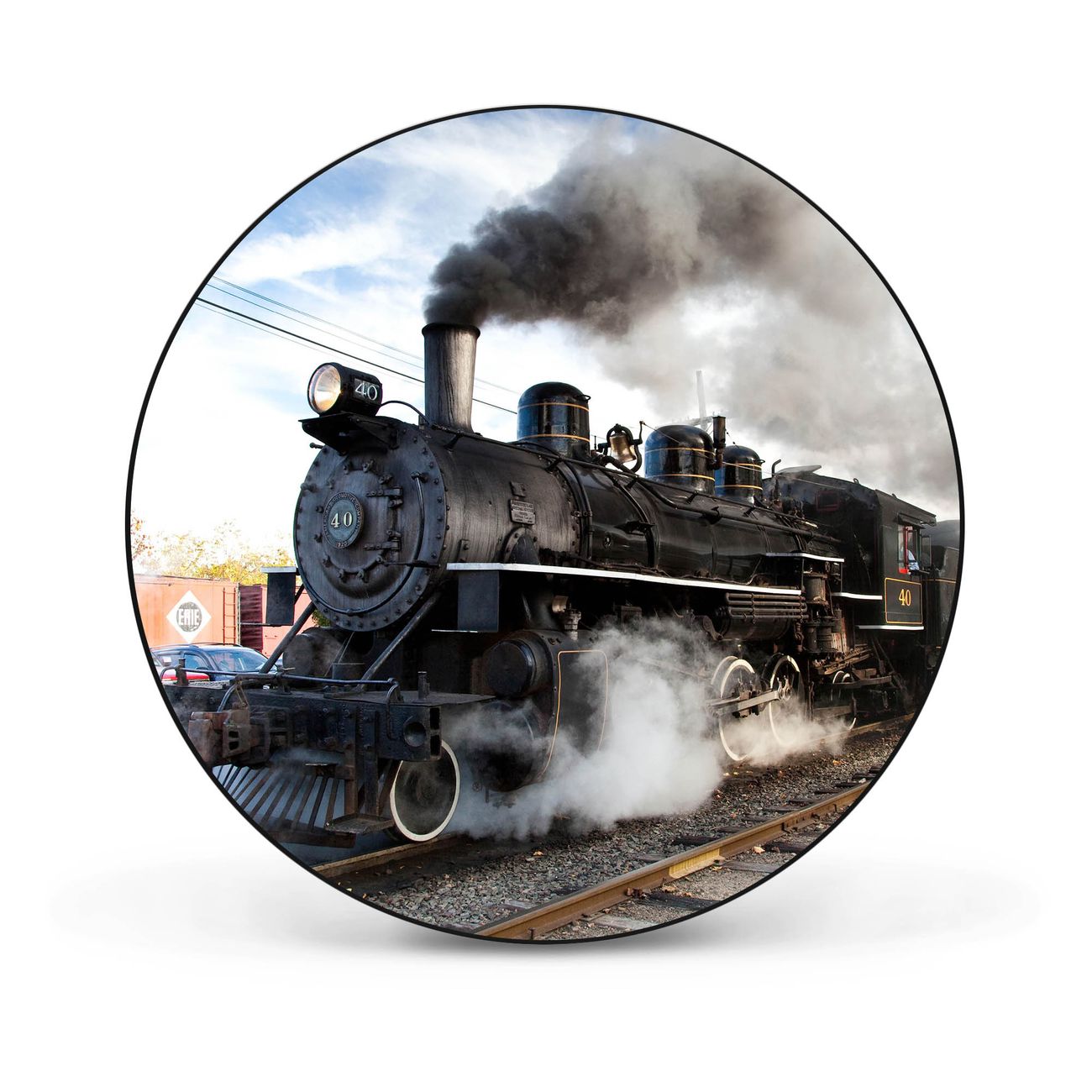 Stahl Magnettafel rund 47cm Dampflok