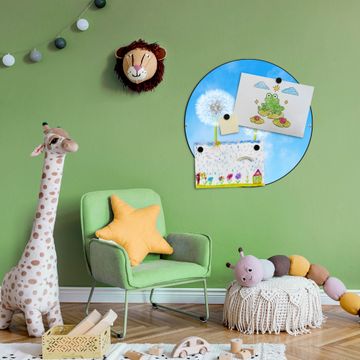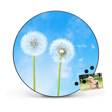 FUNKTION / DESIGN Die banjado Magnettafel mit dem Motiv Motiv Dandelion bringt Ordnung in Ihr Zettelchaos. Fotos, Termine, Notizen oder Rezepte lassen Sich hier stilvoll mit Magneten ordnen, Sie behalten alles im Blick. Die Design Magnetwand ist beschreibbar und wieder abwischbar. Mit dieser Pinnwand haben Sie auch ohne Notizen und Magneten ein schönes Dekoelement. Das Format bietet Ihnen ausreichend Platz um alle wichtigen Informationen im Blick zu behalten. DETAILS / NUTZEN Die magnetische Metall Pinnwand besteht aus schwarz lackiertem Stahl. Sie hat einen Durchmesser von 47cm. Es befinden sich an den Seiten zwei vorgefertigte Löcher die eine schnelle und unkomplizierte Anbringung ermöglichen. Das Motiv ist mit einem seidenmatten Laminat versehen und schützt so zusätzlich vor Kratzern. Es halten alle handelsüblichen Magneten daran. Wir sind ein kleines Team aus dem Herzen von Sachsen. Wir fertigen alle Artikel von Hand für Sie an, Sie erhalten keine preiswerte Importware. Auf Wunsch können Sie auch Ihr eigenes Foto auf die Magnettafel aufbringen, schreiben Sie uns an.
