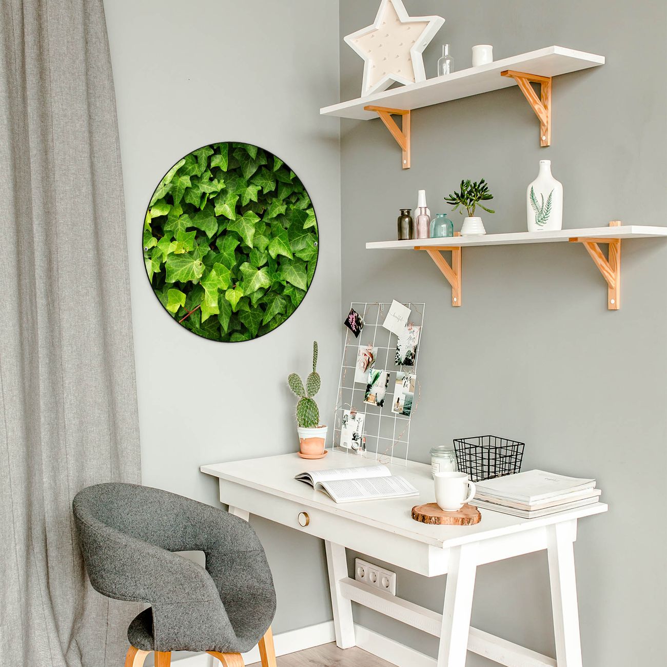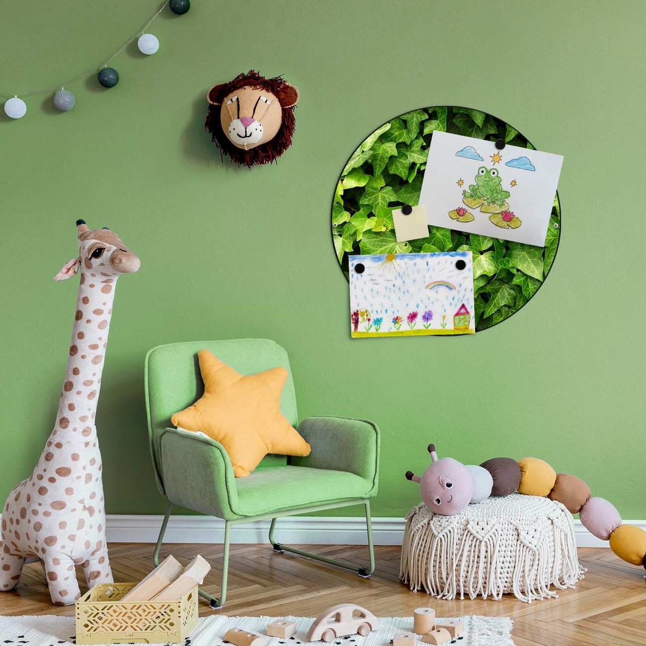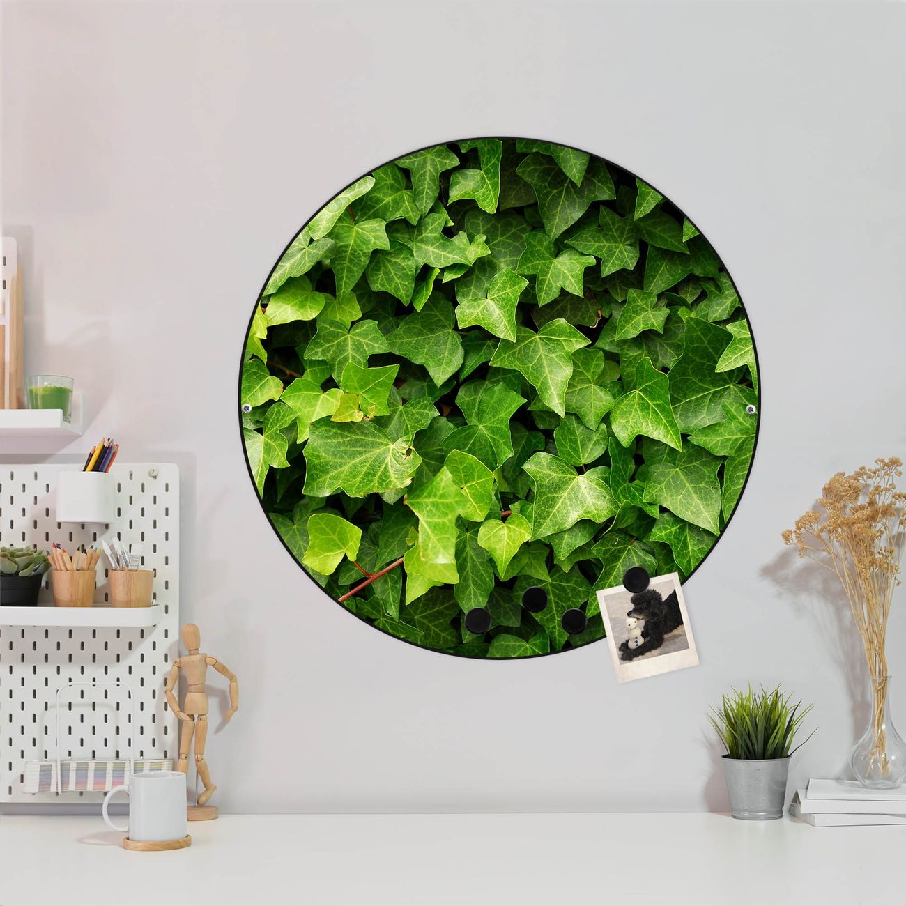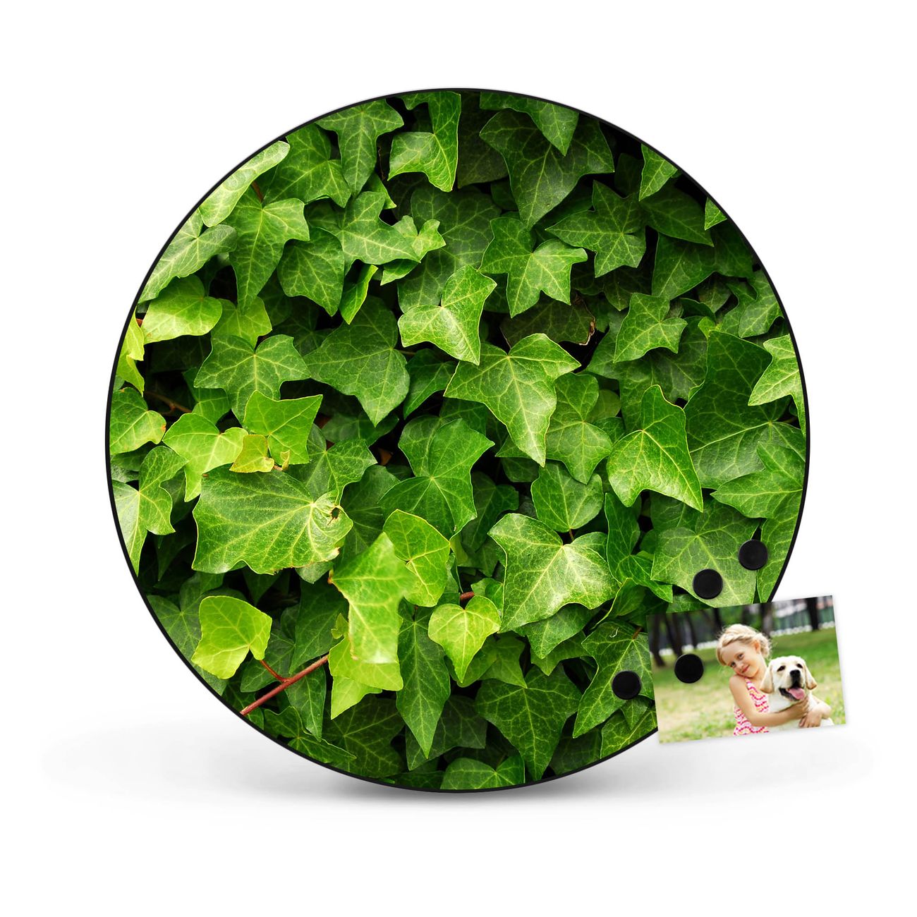 FUNKTION / DESIGN Die banjado Magnettafel mit dem Motiv Motiv Efeu bringt Ordnung in Ihr Zettelchaos. Fotos, Termine, Notizen oder Rezepte lassen Sich hier stilvoll mit Magneten ordnen, Sie behalten alles im Blick. Die Design Magnetwand ist beschreibbar und wieder abwischbar. Mit dieser Pinnwand haben Sie auch ohne Notizen und Magneten ein schönes Dekoelement. Das Format bietet Ihnen ausreichend Platz um alle wichtigen Informationen im Blick zu behalten. DETAILS / NUTZEN Die magnetische Metall Pinnwand besteht aus schwarz lackiertem Stahl. Sie hat einen Durchmesser von 47cm. Es befinden sich an den Seiten zwei vorgefertigte Löcher die eine schnelle und unkomplizierte Anbringung ermöglichen. Das Motiv ist mit einem seidenmatten Laminat versehen und schützt so zusätzlich vor Kratzern. Es halten alle handelsüblichen Magneten daran. Wir sind ein kleines Team aus dem Herzen von Sachsen. Wir fertigen alle Artikel von Hand für Sie an, Sie erhalten keine preiswerte Importware. Auf Wunsch können Sie auch Ihr eigenes Foto auf die Magnettafel aufbringen, schreiben Sie uns an.