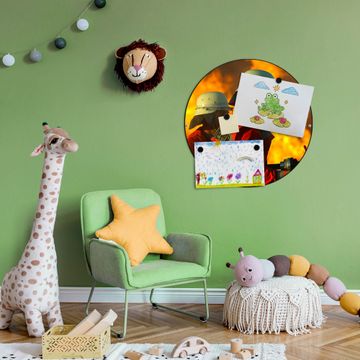 FUNKTION / DESIGN Die banjado Magnettafel mit dem Motiv Motiv Feuer bringt Ordnung in Ihr Zettelchaos. Fotos, Termine, Notizen oder Rezepte lassen Sich hier stilvoll mit Magneten ordnen, Sie behalten alles im Blick. Die Design Magnetwand ist beschreibbar und wieder abwischbar. Mit dieser Pinnwand haben Sie auch ohne Notizen und Magneten ein schönes Dekoelement. Das Format bietet Ihnen ausreichend Platz um alle wichtigen Informationen im Blick zu behalten. DETAILS / NUTZEN Die magnetische Metall Pinnwand besteht aus schwarz lackiertem Stahl. Sie hat einen Durchmesser von 47cm. Es befinden sich an den Seiten zwei vorgefertigte Löcher die eine schnelle und unkomplizierte Anbringung ermöglichen. Das Motiv ist mit einem seidenmatten Laminat versehen und schützt so zusätzlich vor Kratzern. Es halten alle handelsüblichen Magneten daran. Wir sind ein kleines Team aus dem Herzen von Sachsen. Wir fertigen alle Artikel von Hand für Sie an, Sie erhalten keine preiswerte Importware. Auf Wunsch können Sie auch Ihr eigenes Foto auf die Magnettafel aufbringen, schreiben Sie uns an.