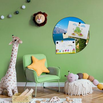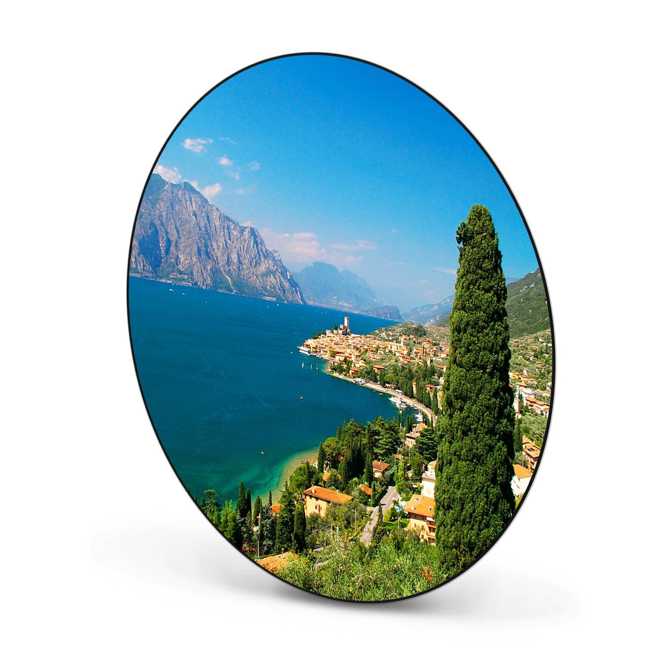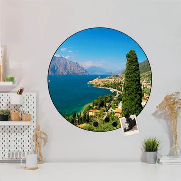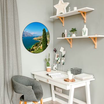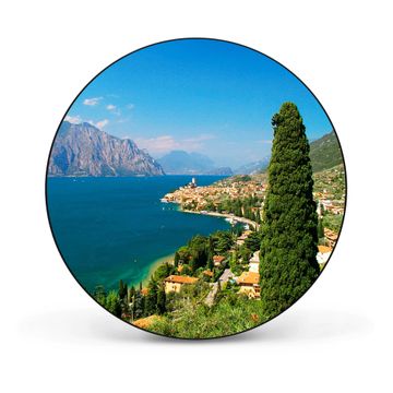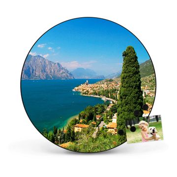 FUNKTION / DESIGN Die banjado Magnettafel mit dem Motiv Motiv Gardasee bringt Ordnung in Ihr Zettelchaos. Fotos, Termine, Notizen oder Rezepte lassen Sich hier stilvoll mit Magneten ordnen, Sie behalten alles im Blick. Die Design Magnetwand ist beschreibbar und wieder abwischbar. Mit dieser Pinnwand haben Sie auch ohne Notizen und Magneten ein schönes Dekoelement. Das Format bietet Ihnen ausreichend Platz um alle wichtigen Informationen im Blick zu behalten. DETAILS / NUTZEN Die magnetische Metall Pinnwand besteht aus schwarz lackiertem Stahl. Sie hat einen Durchmesser von 47cm. Es befinden sich an den Seiten zwei vorgefertigte Löcher die eine schnelle und unkomplizierte Anbringung ermöglichen. Das Motiv ist mit einem seidenmatten Laminat versehen und schützt so zusätzlich vor Kratzern. Es halten alle handelsüblichen Magneten daran. Wir sind ein kleines Team aus dem Herzen von Sachsen. Wir fertigen alle Artikel von Hand für Sie an, Sie erhalten keine preiswerte Importware. Auf Wunsch können Sie auch Ihr eigenes Foto auf die Magnettafel aufbringen, schreiben Sie uns an.