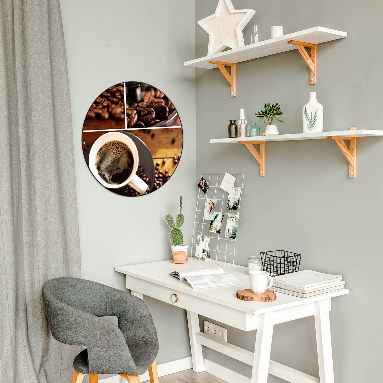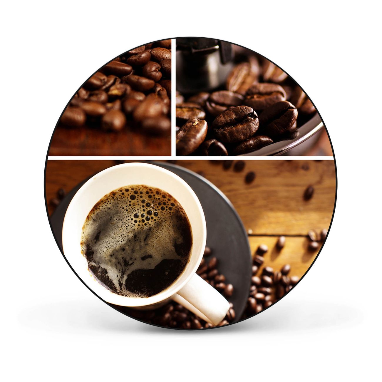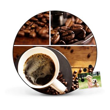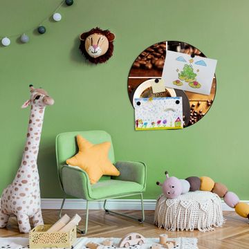 FUNKTION / DESIGN Die banjado Magnettafel mit dem Motiv Motiv Kaffee&Schokolade bringt Ordnung in Ihr Zettelchaos. Fotos, Termine, Notizen oder Rezepte lassen Sich hier stilvoll mit Magneten ordnen, Sie behalten alles im Blick. Die Design Magnetwand ist beschreibbar und wieder abwischbar. Mit dieser Pinnwand haben Sie auch ohne Notizen und Magneten ein schönes Dekoelement. Das Format bietet Ihnen ausreichend Platz um alle wichtigen Informationen im Blick zu behalten. DETAILS / NUTZEN Die magnetische Metall Pinnwand besteht aus schwarz lackiertem Stahl. Sie hat einen Durchmesser von 47cm. Es befinden sich an den Seiten zwei vorgefertigte Löcher die eine schnelle und unkomplizierte Anbringung ermöglichen. Das Motiv ist mit einem seidenmatten Laminat versehen und schützt so zusätzlich vor Kratzern. Es halten alle handelsüblichen Magneten daran. Wir sind ein kleines Team aus dem Herzen von Sachsen. Wir fertigen alle Artikel von Hand für Sie an, Sie erhalten keine preiswerte Importware. Auf Wunsch können Sie auch Ihr eigenes Foto auf die Magnettafel aufbringen, schreiben Sie uns an.