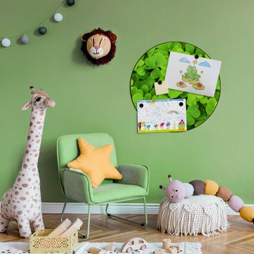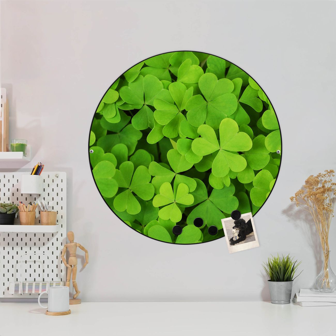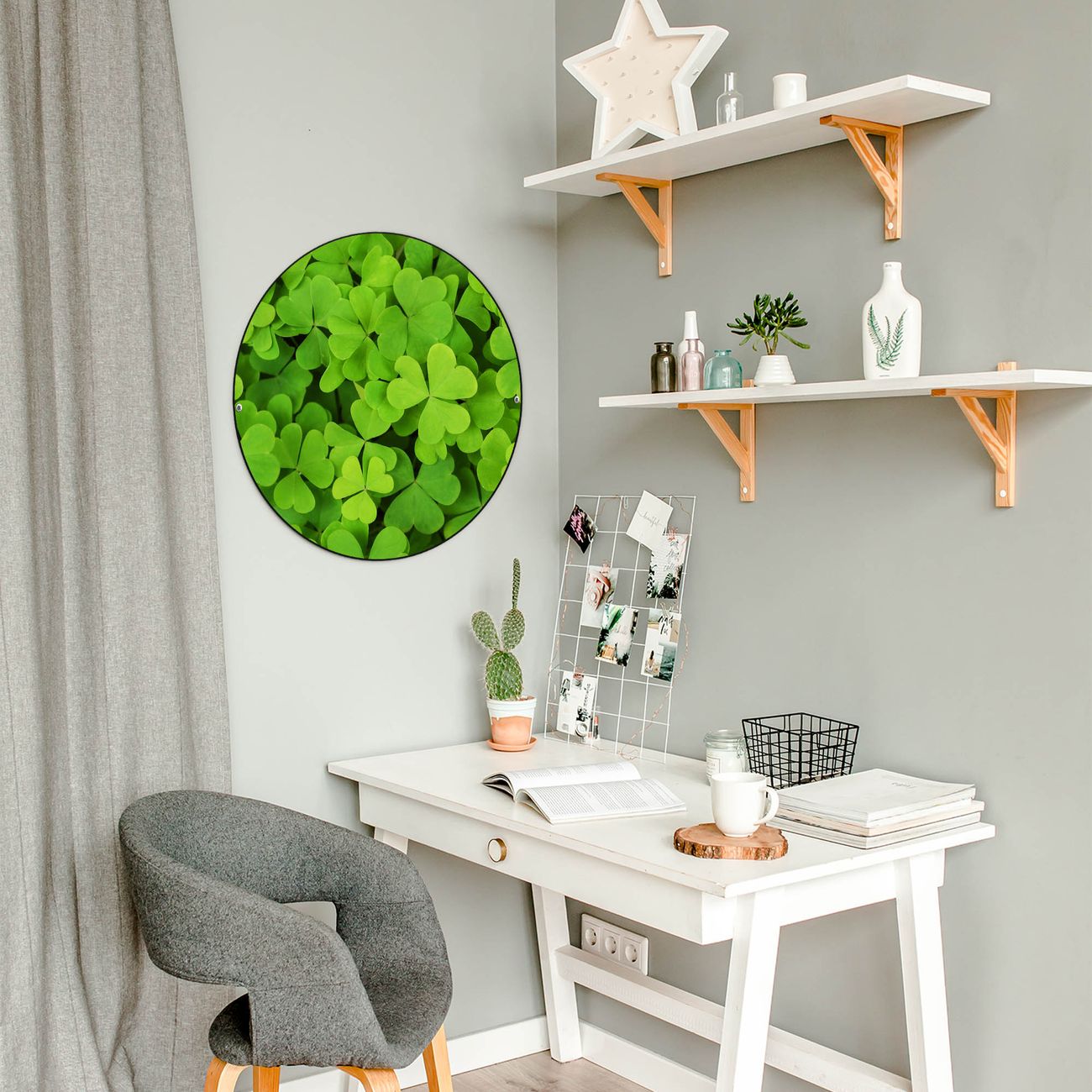 FUNKTION / DESIGN Die banjado Magnettafel mit dem Motiv Motiv Klee bringt Ordnung in Ihr Zettelchaos. Fotos, Termine, Notizen oder Rezepte lassen Sich hier stilvoll mit Magneten ordnen, Sie behalten alles im Blick. Die Design Magnetwand ist beschreibbar und wieder abwischbar. Mit dieser Pinnwand haben Sie auch ohne Notizen und Magneten ein schönes Dekoelement. Das Format bietet Ihnen ausreichend Platz um alle wichtigen Informationen im Blick zu behalten. DETAILS / NUTZEN Die magnetische Metall Pinnwand besteht aus schwarz lackiertem Stahl. Sie hat einen Durchmesser von 47cm. Es befinden sich an den Seiten zwei vorgefertigte Löcher die eine schnelle und unkomplizierte Anbringung ermöglichen. Das Motiv ist mit einem seidenmatten Laminat versehen und schützt so zusätzlich vor Kratzern. Es halten alle handelsüblichen Magneten daran. Wir sind ein kleines Team aus dem Herzen von Sachsen. Wir fertigen alle Artikel von Hand für Sie an, Sie erhalten keine preiswerte Importware. Auf Wunsch können Sie auch Ihr eigenes Foto auf die Magnettafel aufbringen, schreiben Sie uns an.