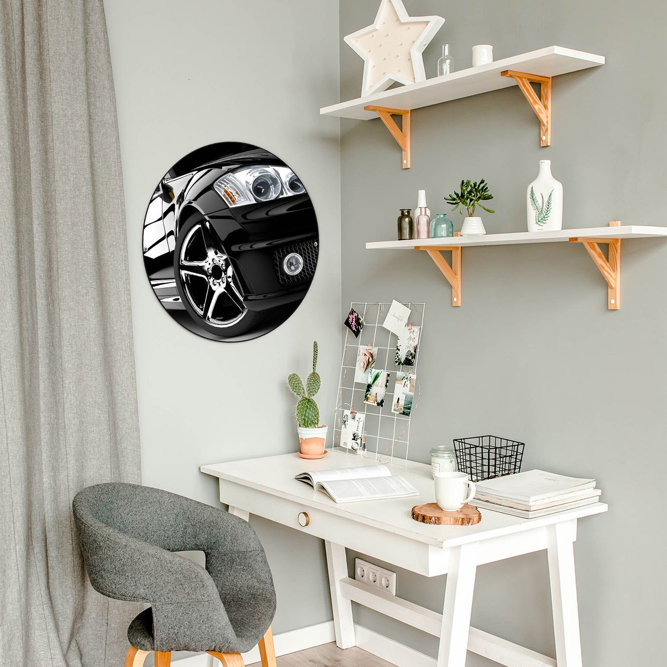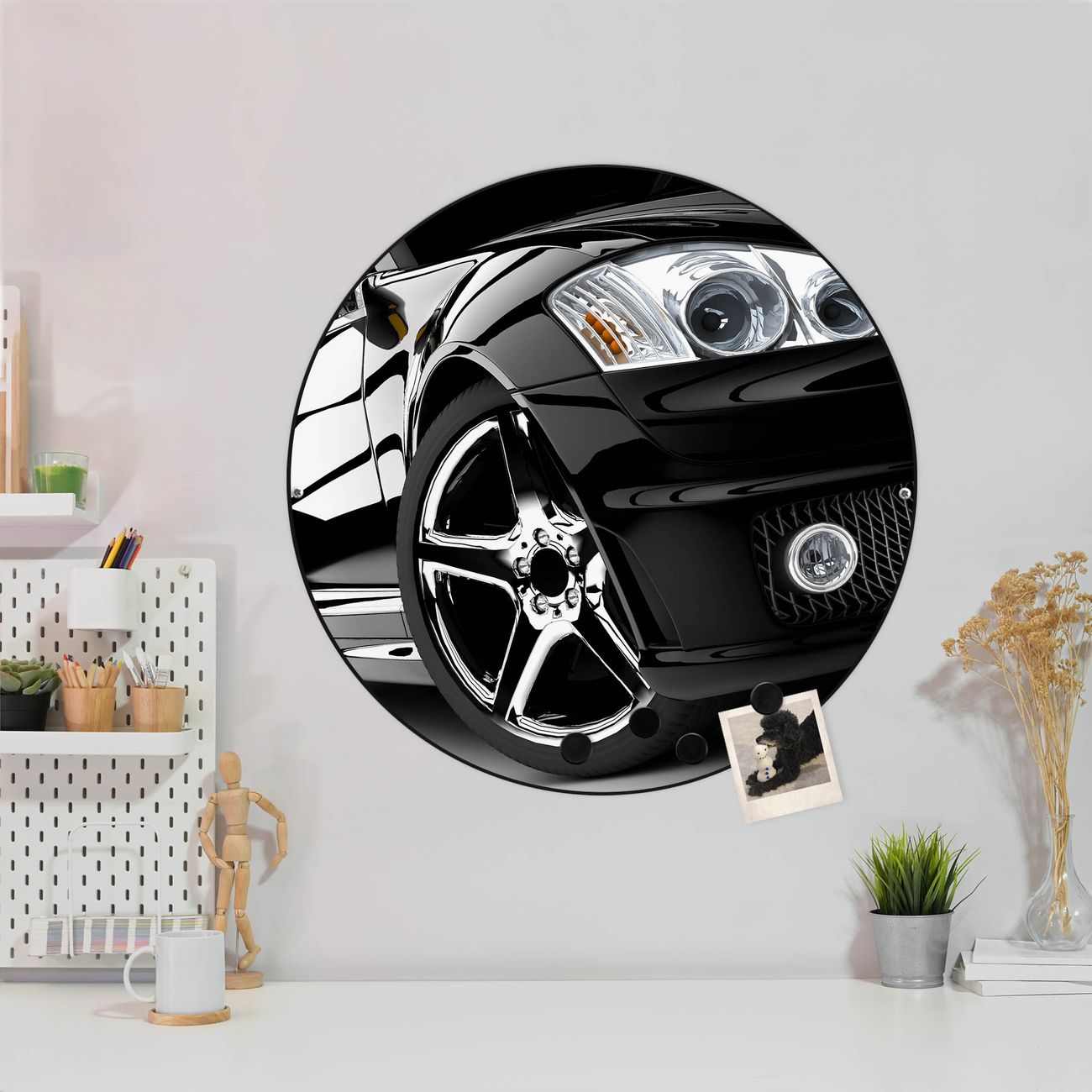 FUNKTION / DESIGN Die banjado Magnettafel mit dem Motiv Motiv Luxus Car bringt Ordnung in Ihr Zettelchaos. Fotos, Termine, Notizen oder Rezepte lassen Sich hier stilvoll mit Magneten ordnen, Sie behalten alles im Blick. Die Design Magnetwand ist beschreibbar und wieder abwischbar. Mit dieser Pinnwand haben Sie auch ohne Notizen und Magneten ein schönes Dekoelement. Das Format bietet Ihnen ausreichend Platz um alle wichtigen Informationen im Blick zu behalten. DETAILS / NUTZEN Die magnetische Metall Pinnwand besteht aus schwarz lackiertem Stahl. Sie hat einen Durchmesser von 47cm. Es befinden sich an den Seiten zwei vorgefertigte Löcher die eine schnelle und unkomplizierte Anbringung ermöglichen. Das Motiv ist mit einem seidenmatten Laminat versehen und schützt so zusätzlich vor Kratzern. Es halten alle handelsüblichen Magneten daran. Wir sind ein kleines Team aus dem Herzen von Sachsen. Wir fertigen alle Artikel von Hand für Sie an, Sie erhalten keine preiswerte Importware. Auf Wunsch können Sie auch Ihr eigenes Foto auf die Magnettafel aufbringen, schreiben Sie uns an.
