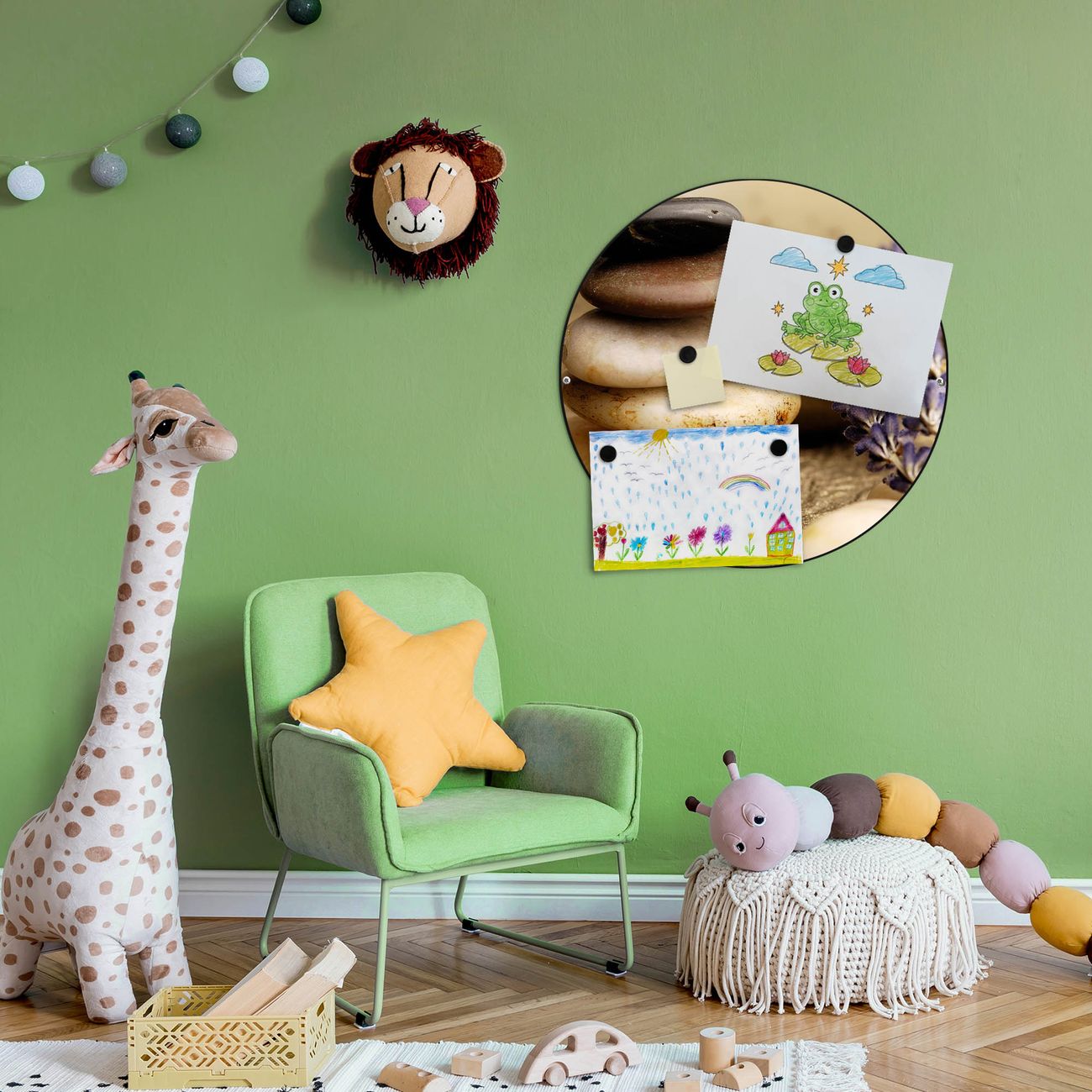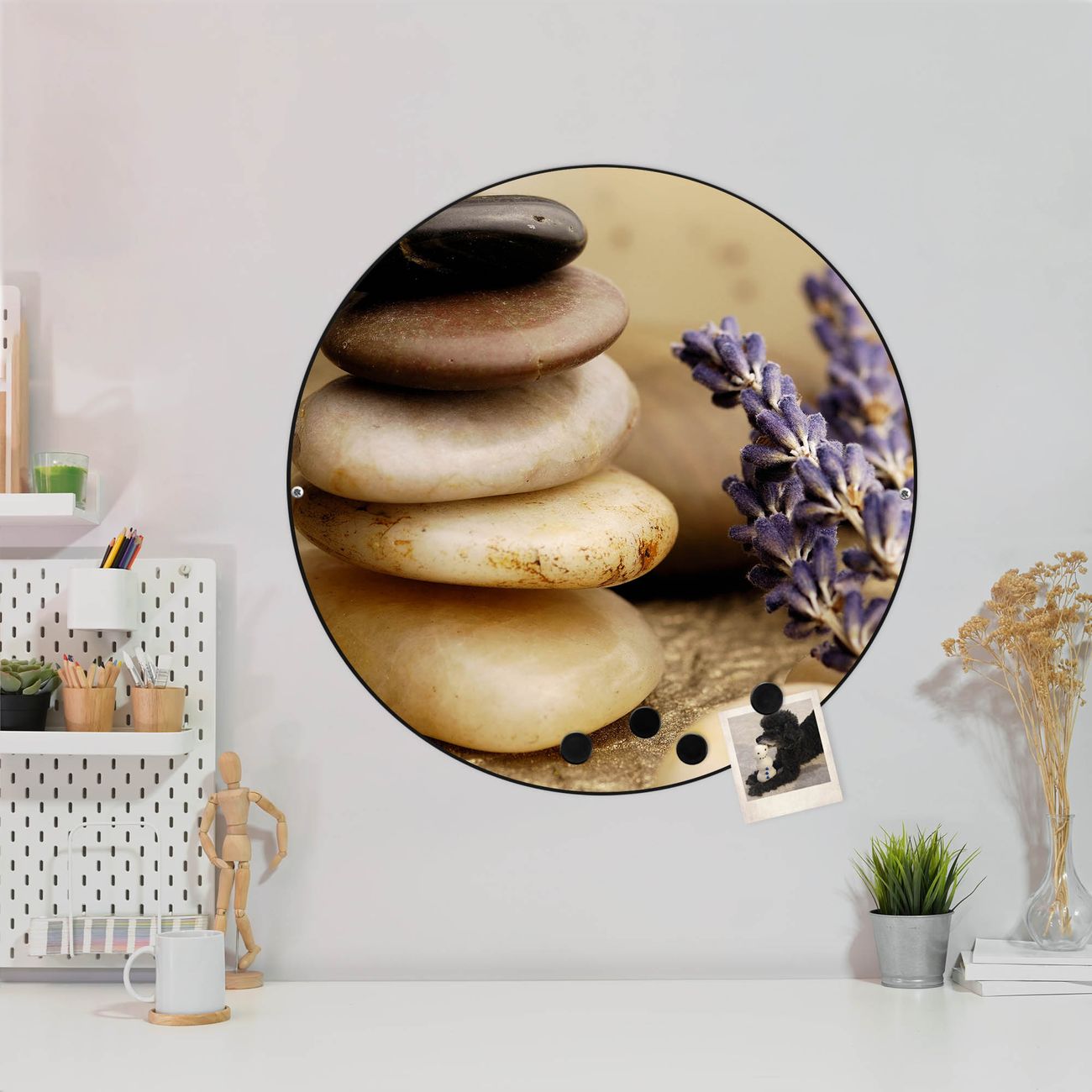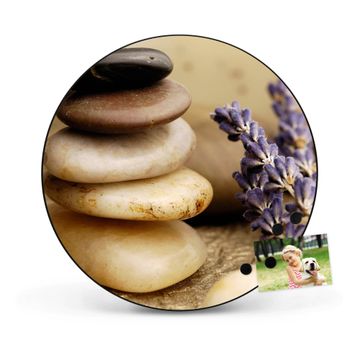 FUNKTION / DESIGN Die banjado Magnettafel mit dem Motiv Motiv Meditation bringt Ordnung in Ihr Zettelchaos. Fotos, Termine, Notizen oder Rezepte lassen Sich hier stilvoll mit Magneten ordnen, Sie behalten alles im Blick. Die Design Magnetwand ist beschreibbar und wieder abwischbar. Mit dieser Pinnwand haben Sie auch ohne Notizen und Magneten ein schönes Dekoelement. Das Format bietet Ihnen ausreichend Platz um alle wichtigen Informationen im Blick zu behalten. DETAILS / NUTZEN Die magnetische Metall Pinnwand besteht aus schwarz lackiertem Stahl. Sie hat einen Durchmesser von 47cm. Es befinden sich an den Seiten zwei vorgefertigte Löcher die eine schnelle und unkomplizierte Anbringung ermöglichen. Das Motiv ist mit einem seidenmatten Laminat versehen und schützt so zusätzlich vor Kratzern. Es halten alle handelsüblichen Magneten daran. Wir sind ein kleines Team aus dem Herzen von Sachsen. Wir fertigen alle Artikel von Hand für Sie an, Sie erhalten keine preiswerte Importware. Auf Wunsch können Sie auch Ihr eigenes Foto auf die Magnettafel aufbringen, schreiben Sie uns an.