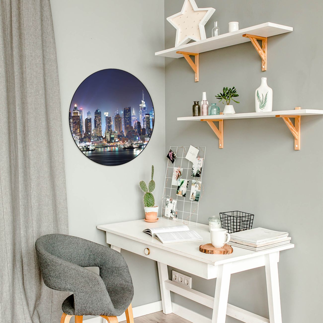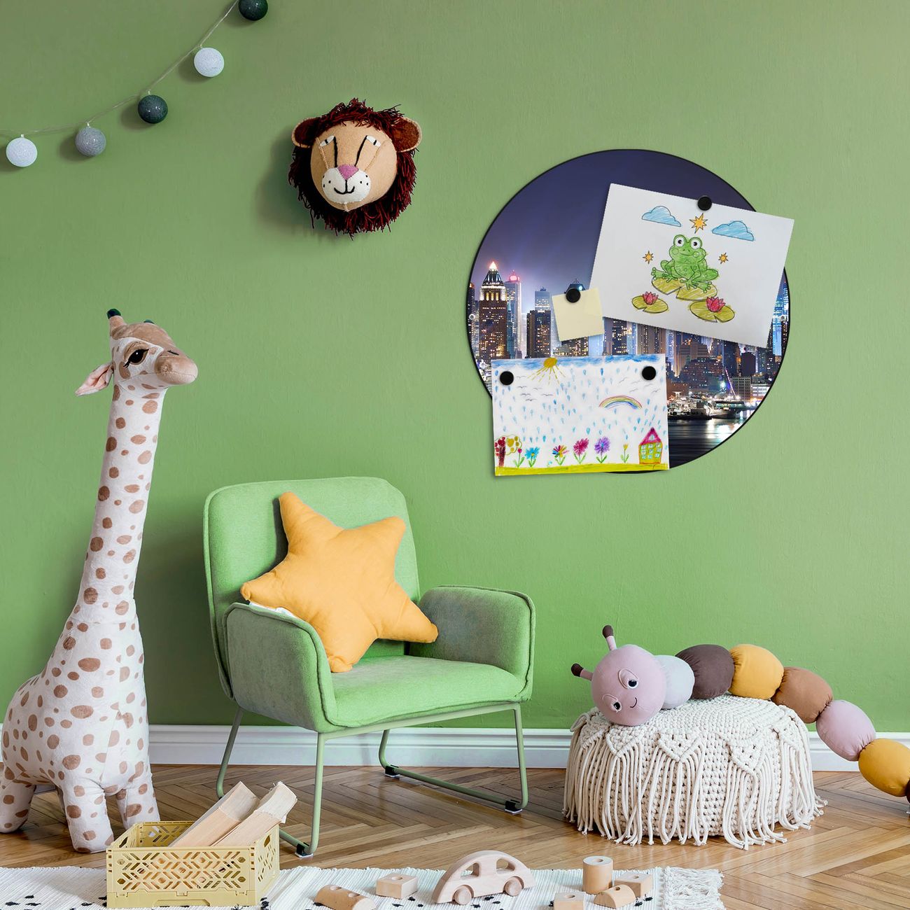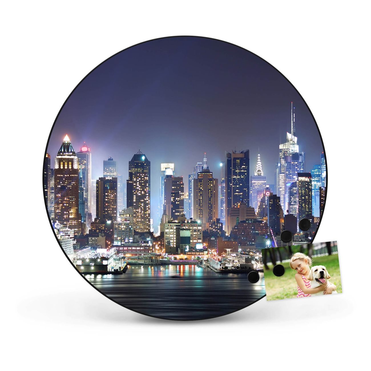 FUNKTION / DESIGN Die banjado Magnettafel mit dem Motiv Motiv New York bringt Ordnung in Ihr Zettelchaos. Fotos, Termine, Notizen oder Rezepte lassen Sich hier stilvoll mit Magneten ordnen, Sie behalten alles im Blick. Die Design Magnetwand ist beschreibbar und wieder abwischbar. Mit dieser Pinnwand haben Sie auch ohne Notizen und Magneten ein schönes Dekoelement. Das Format bietet Ihnen ausreichend Platz um alle wichtigen Informationen im Blick zu behalten. DETAILS / NUTZEN Die magnetische Metall Pinnwand besteht aus schwarz lackiertem Stahl. Sie hat einen Durchmesser von 47cm. Es befinden sich an den Seiten zwei vorgefertigte Löcher die eine schnelle und unkomplizierte Anbringung ermöglichen. Das Motiv ist mit einem seidenmatten Laminat versehen und schützt so zusätzlich vor Kratzern. Es halten alle handelsüblichen Magneten daran. Wir sind ein kleines Team aus dem Herzen von Sachsen. Wir fertigen alle Artikel von Hand für Sie an, Sie erhalten keine preiswerte Importware. Auf Wunsch können Sie auch Ihr eigenes Foto auf die Magnettafel aufbringen, schreiben Sie uns an.